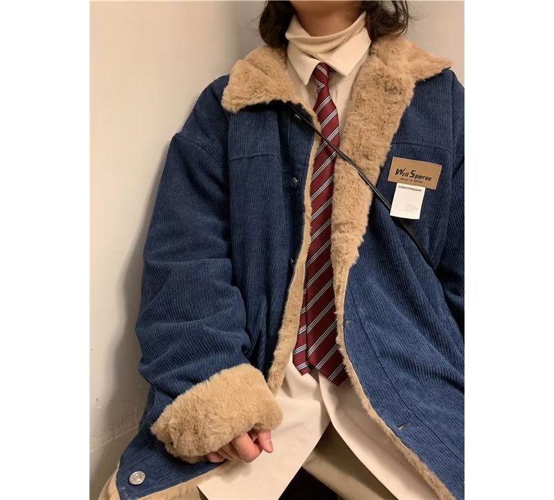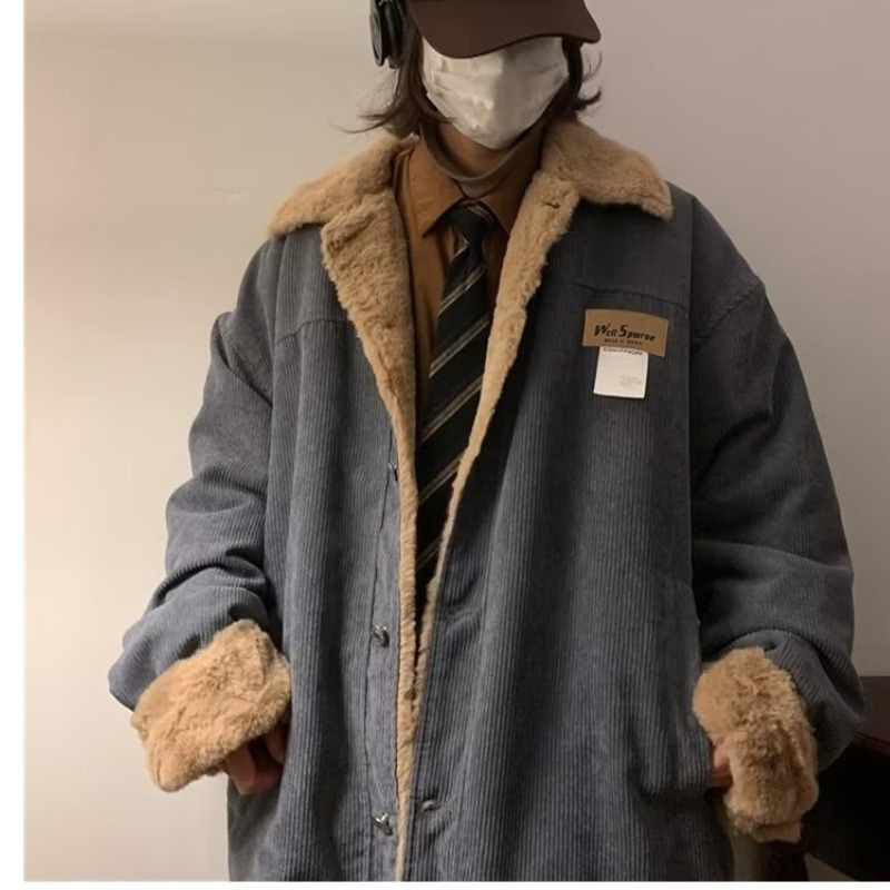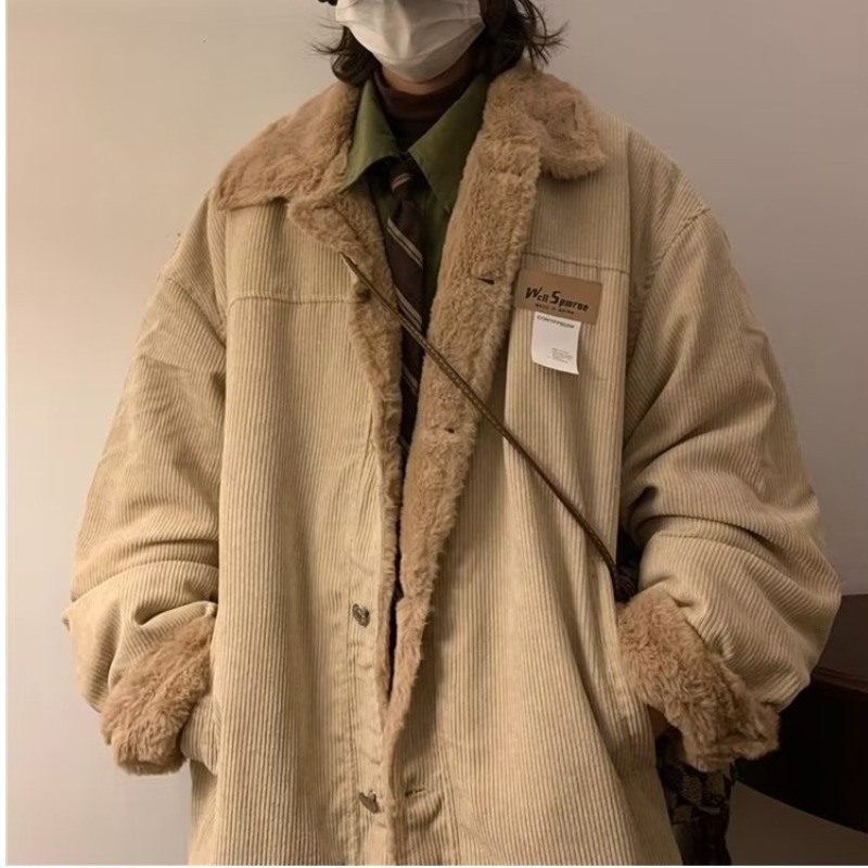 홍콩 스타일 복고풍 코듀로이 코튼 패딩 코트 남성과 여성을위한 겨울 한국 스타일 홍콩 스타일 느슨한 캐주얼 두껍게 된면 패딩 코트 트렌디스토어 가기