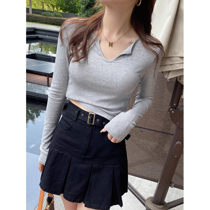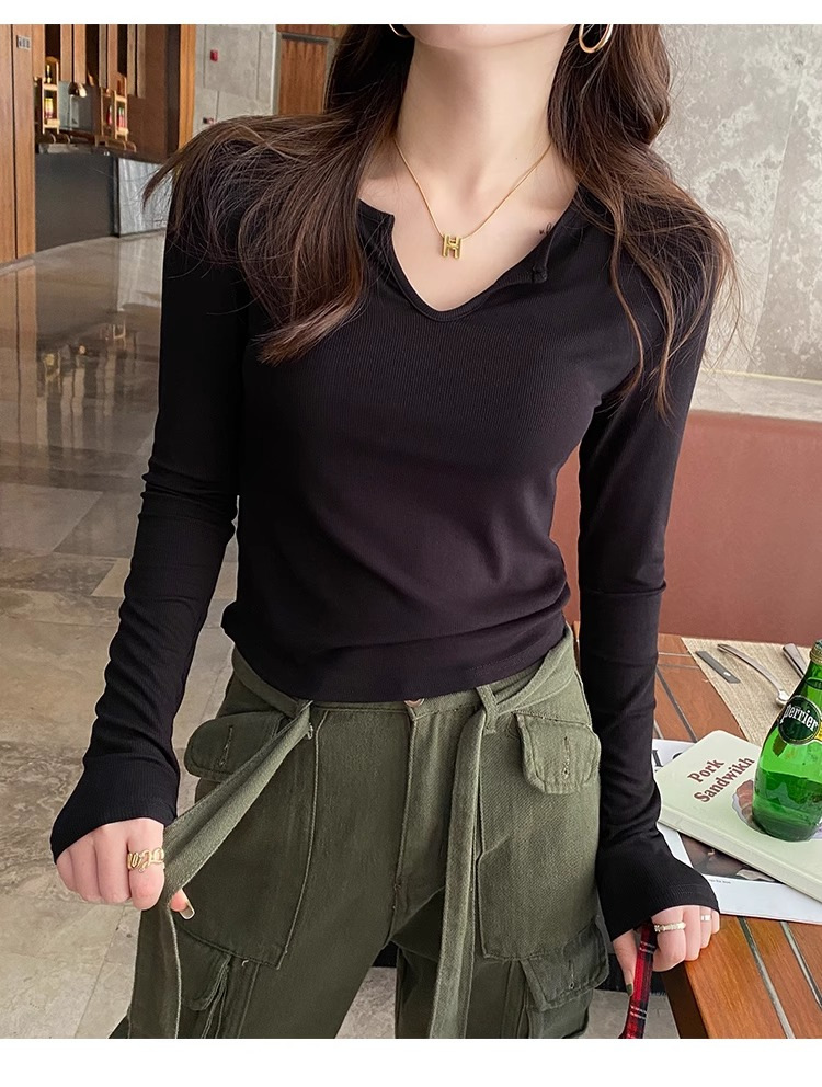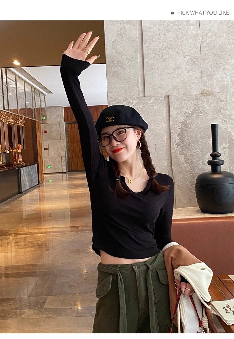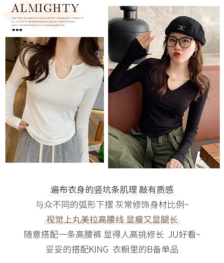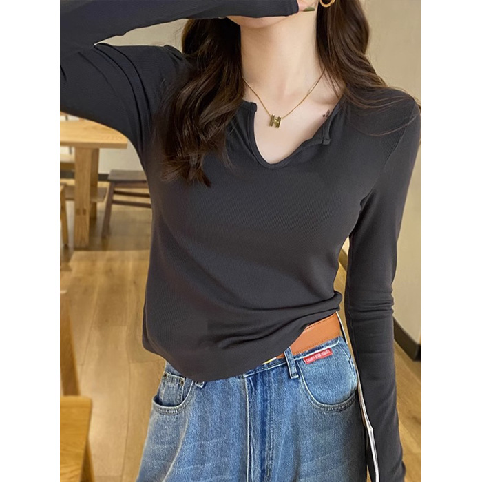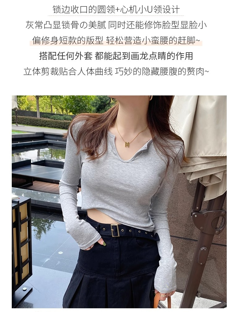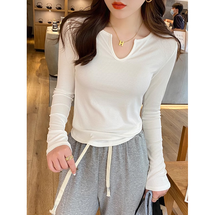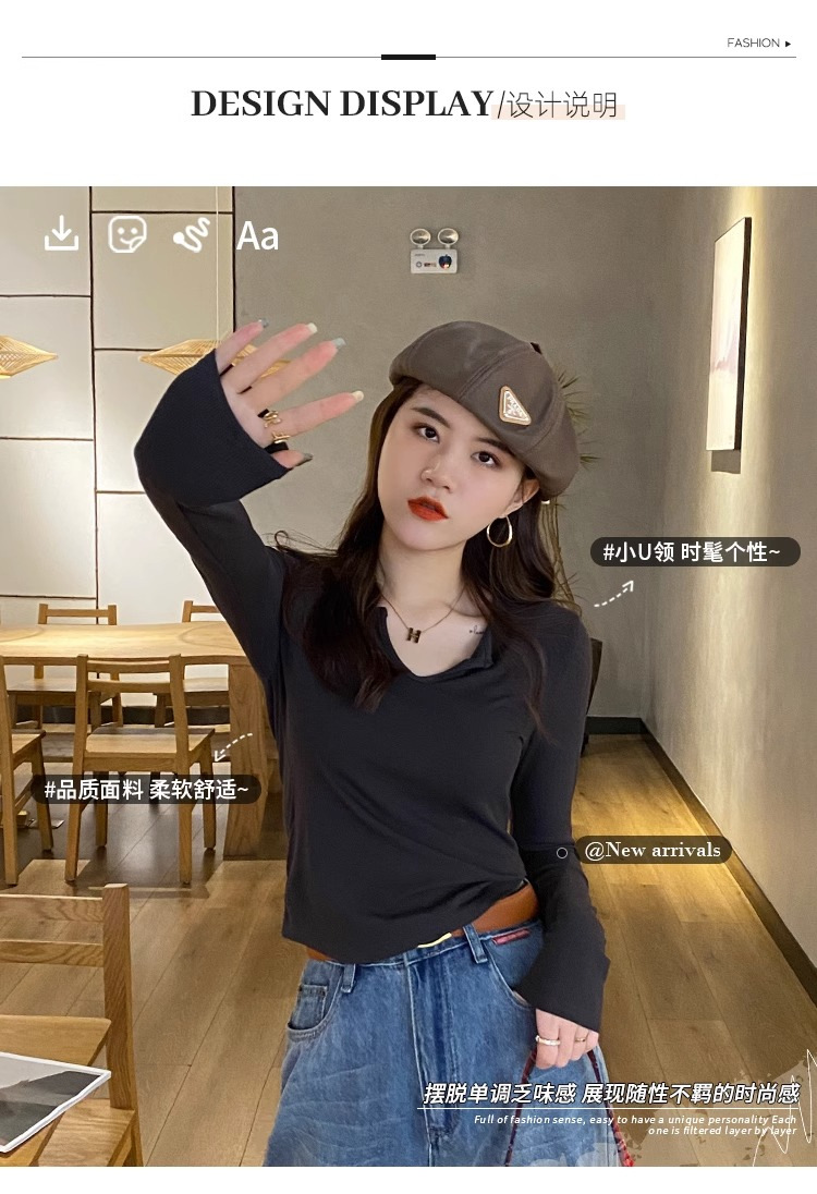 언더 셔츠 여성의 봄과 가을 긴팔 티셔츠 디자인 감각 틈새 슬림 핏 슬리밍 내부 U 넥 탑