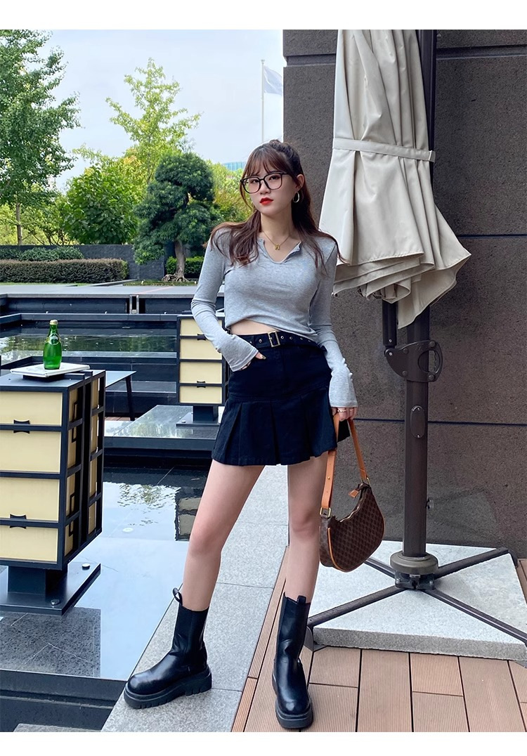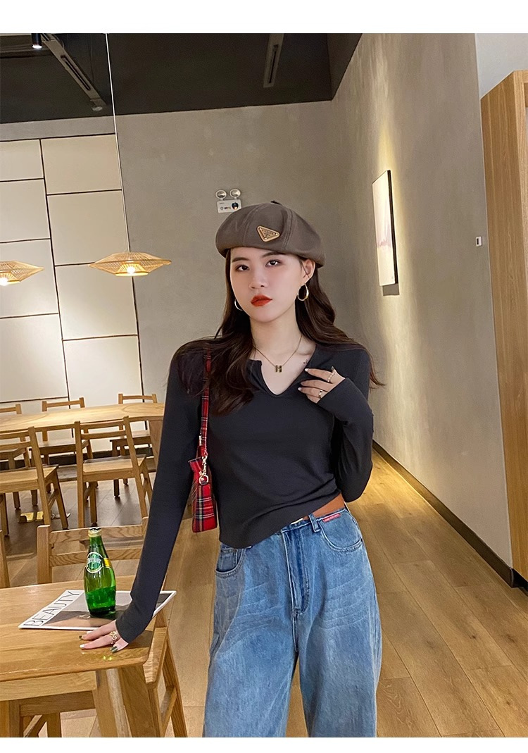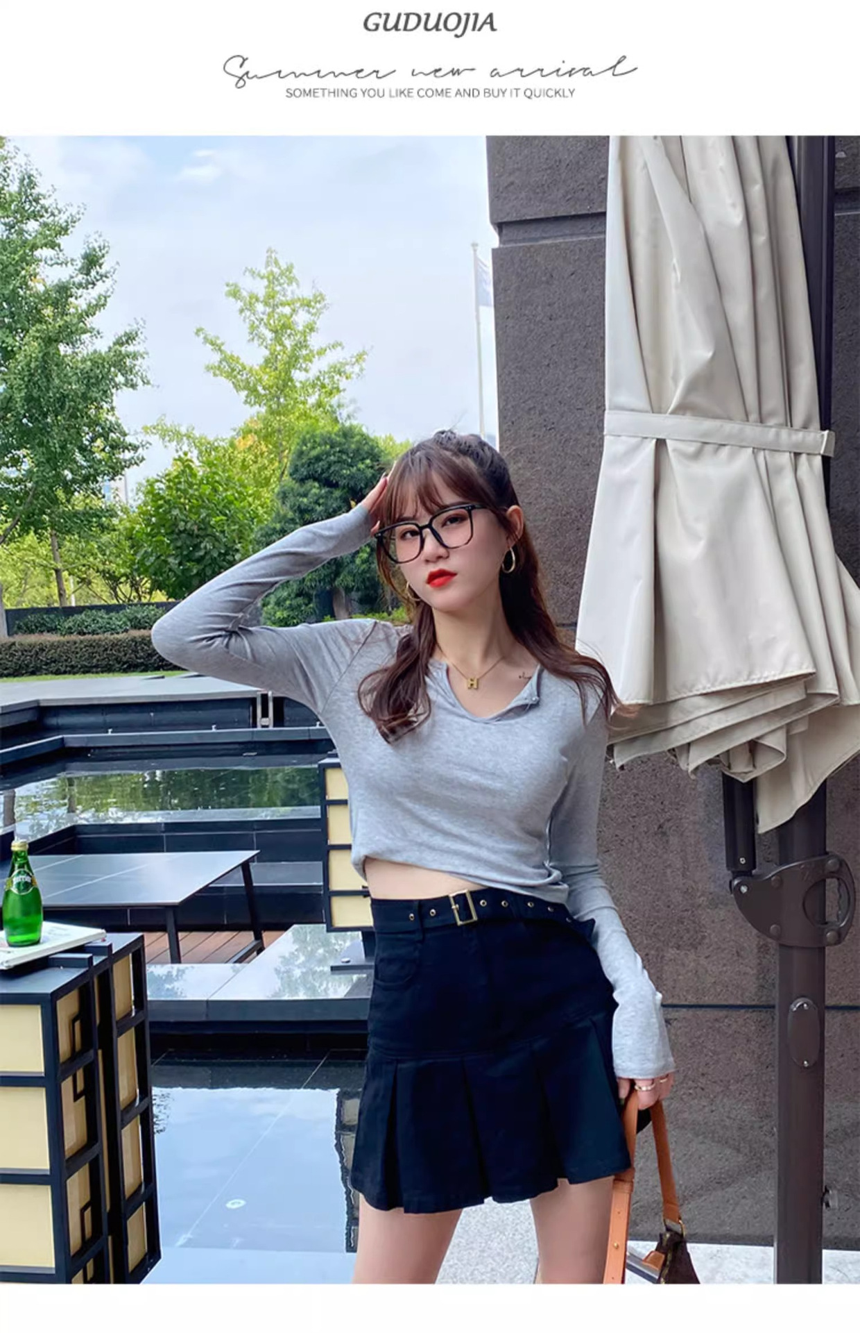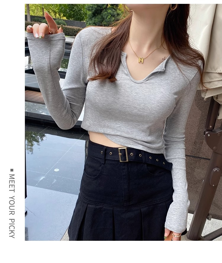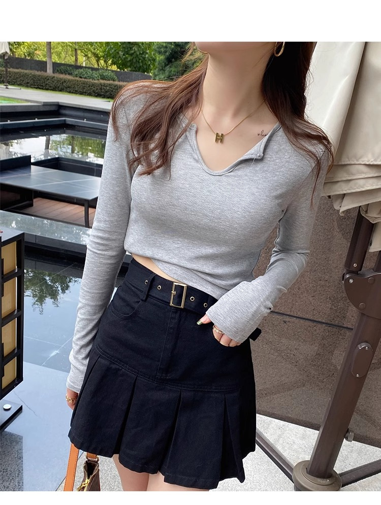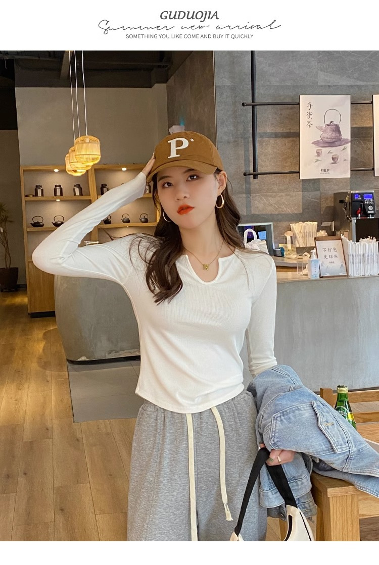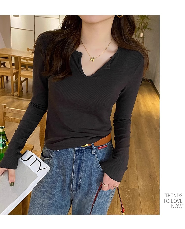 언더 셔츠 여성의 봄과 가을 긴팔 티셔츠 디자인 감각 틈새 슬림 핏 슬리밍 내부 U 넥 탑
