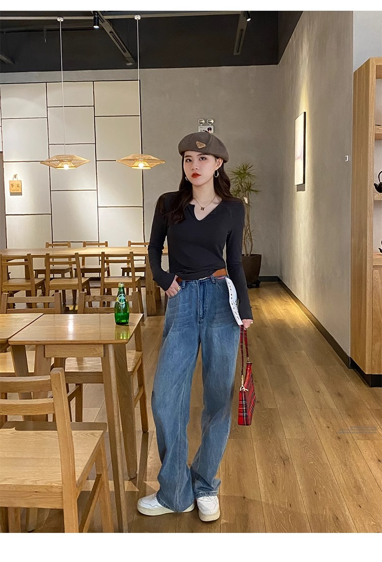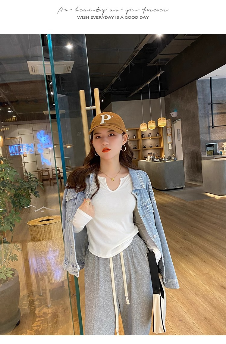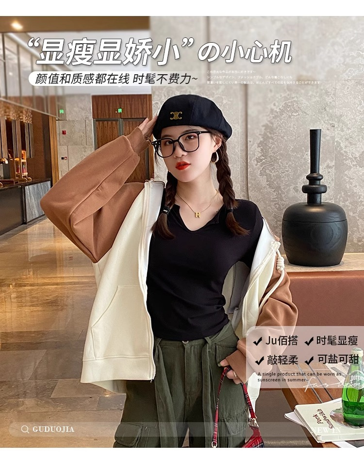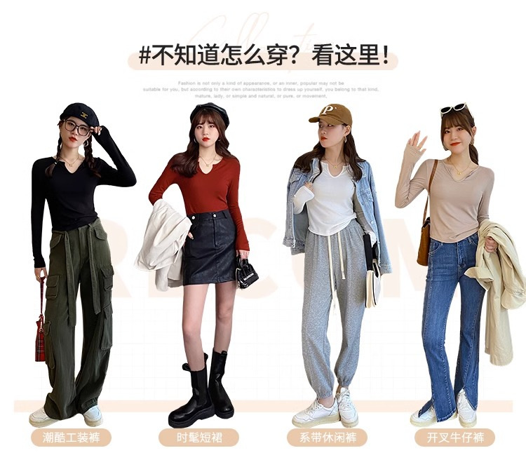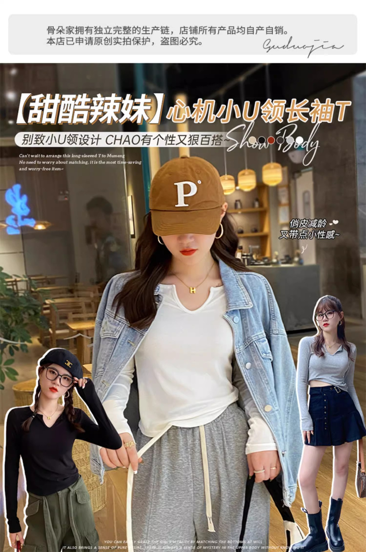 언더 셔츠 여성의 봄과 가을 긴팔 티셔츠 디자인 감각 틈새 슬림 핏 슬리밍 내부 U 넥 탑스토어 가기
