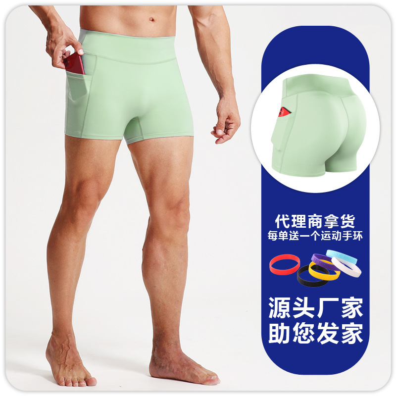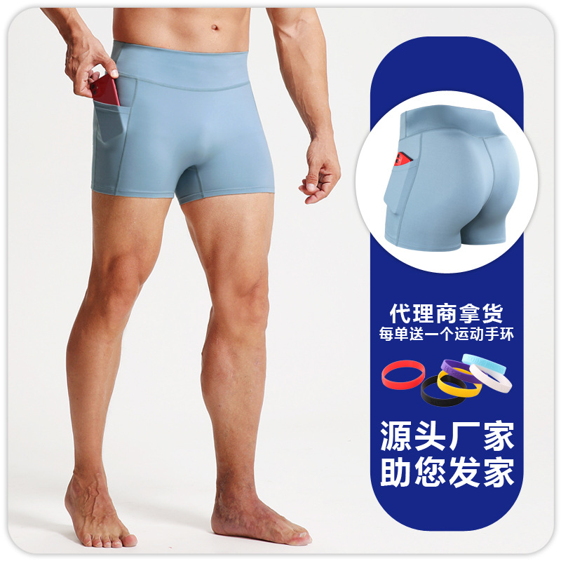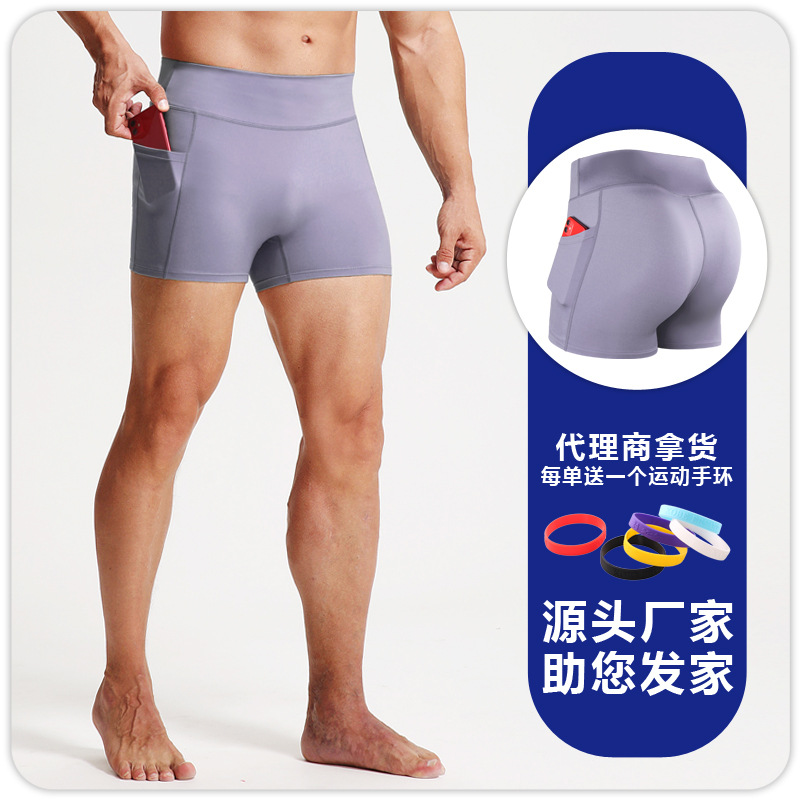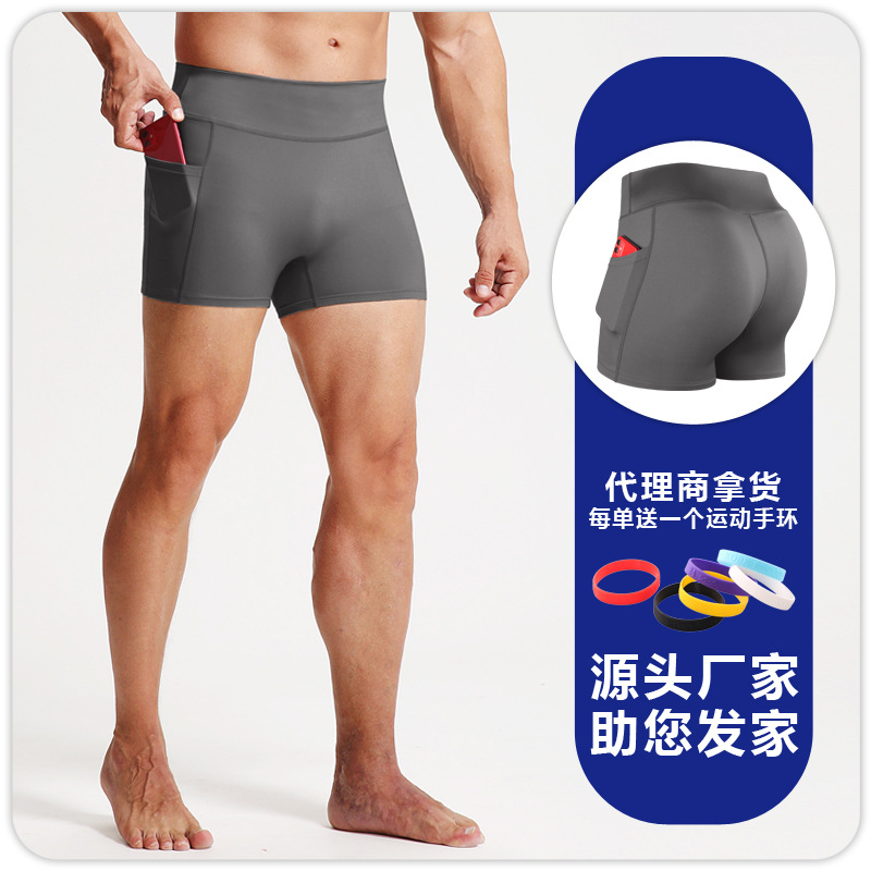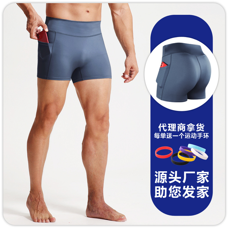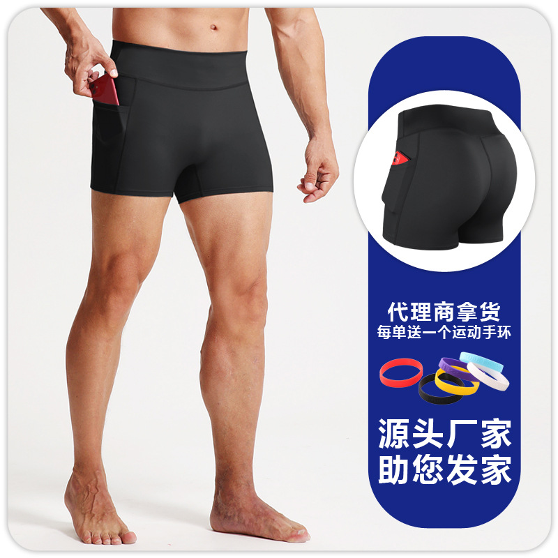 높은 허리 피트니스 반바지 남자 스포츠 타이트 바지 포켓 통기성 높은 탄성 압축 레깅스 러닝 피트니스 3 점 바지스토어 가기
