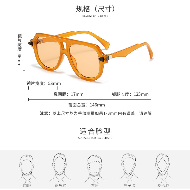 새로운 스타일 더블 빔 맞춤형 선글라스 트렌디 한 대형 프레임 유럽과 미국 패션 운전 태양 보호 태양 그늘 안경 선글라스 여성 도매