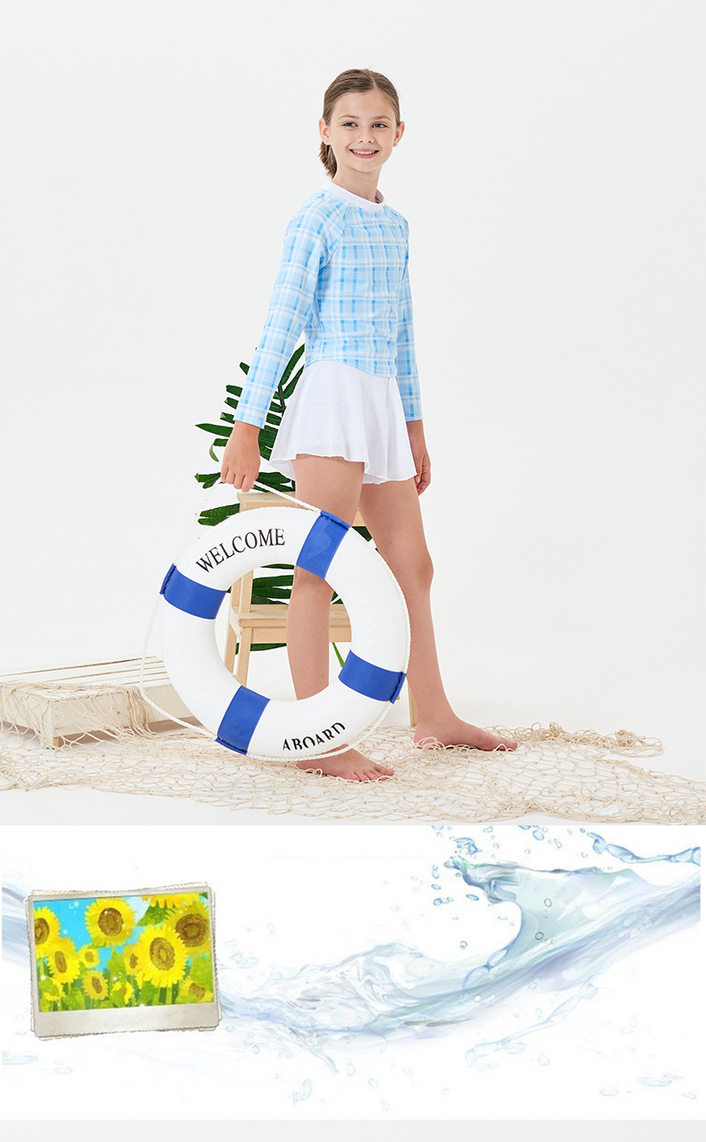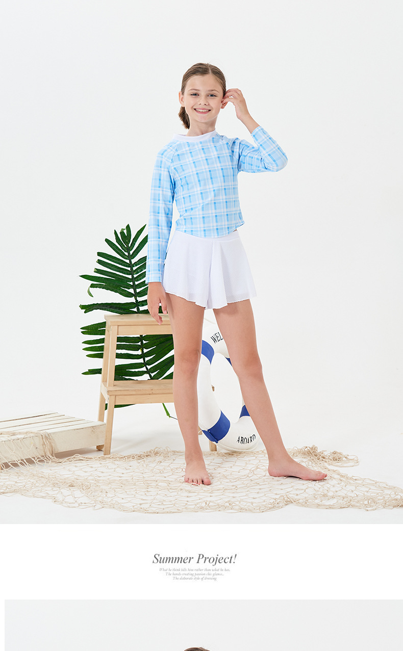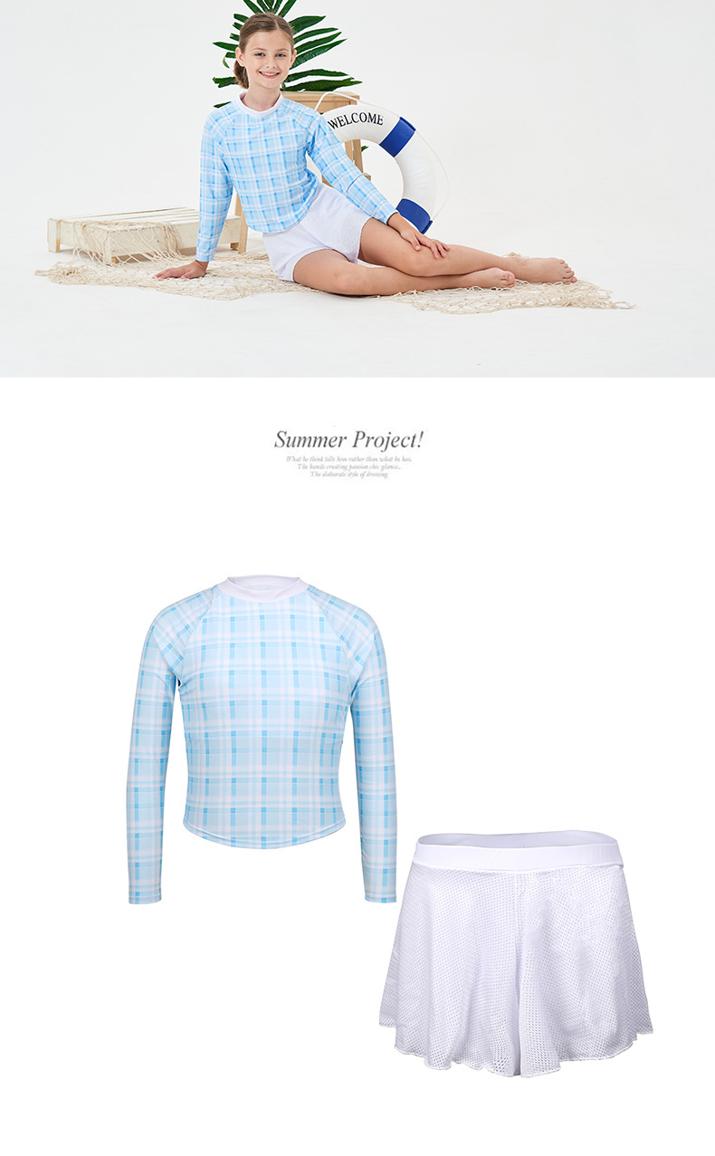 2024 소녀의 새로운 수영복 분할 긴 소매 태양 보호 빠른 건조 수영 스플릿 스커트 복서 보수적 인 청소년