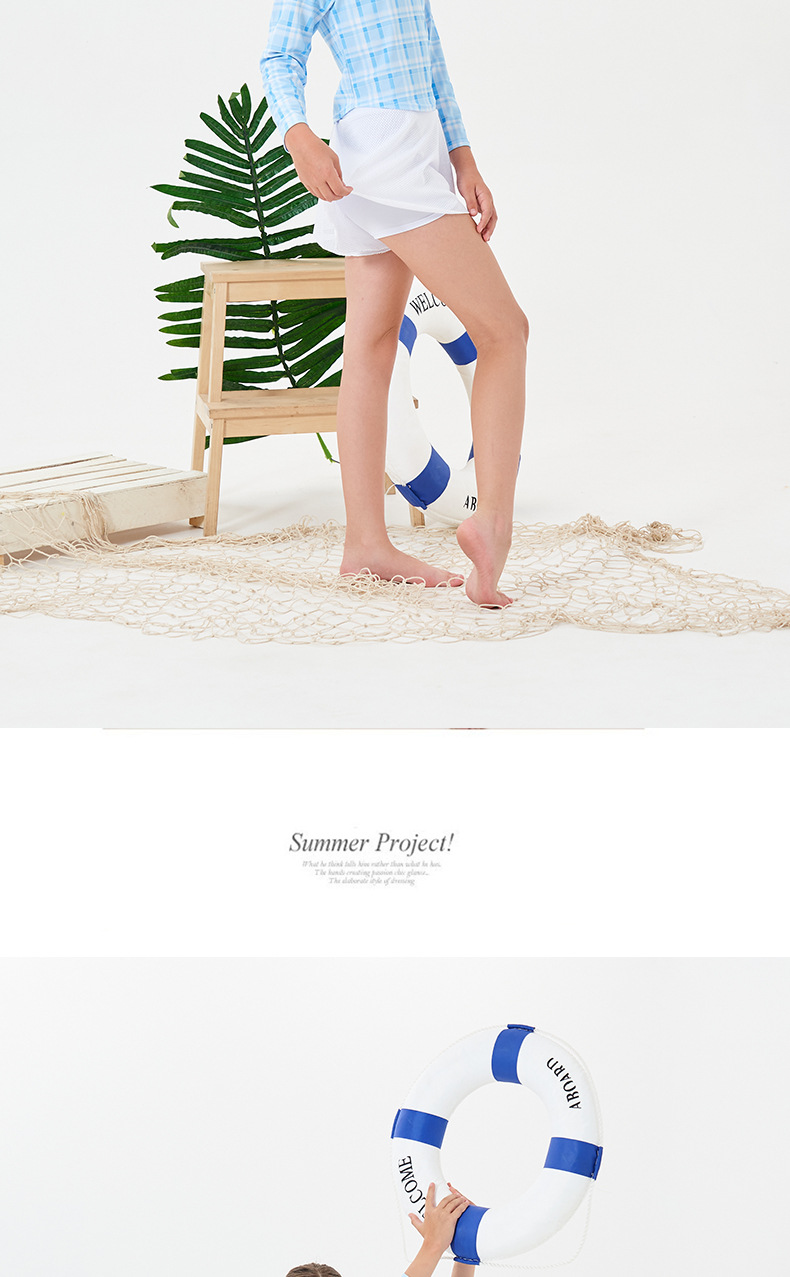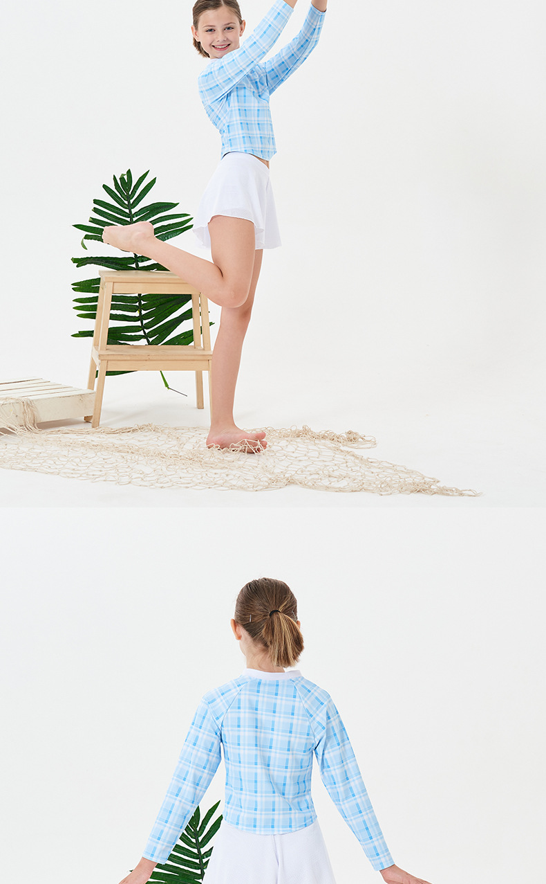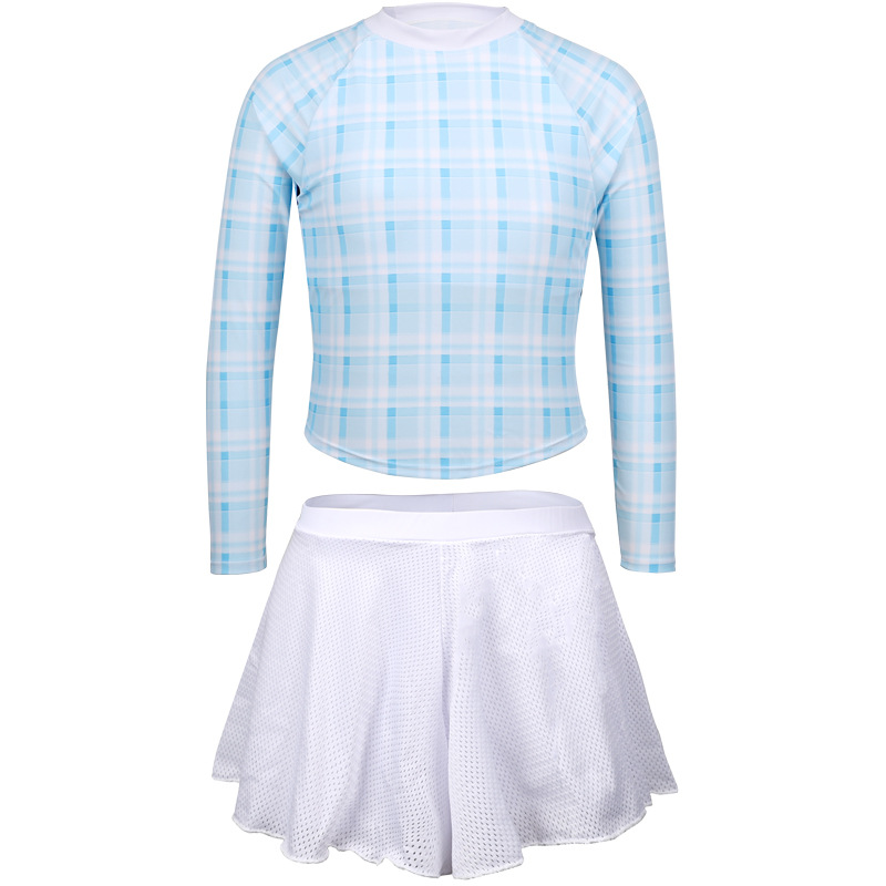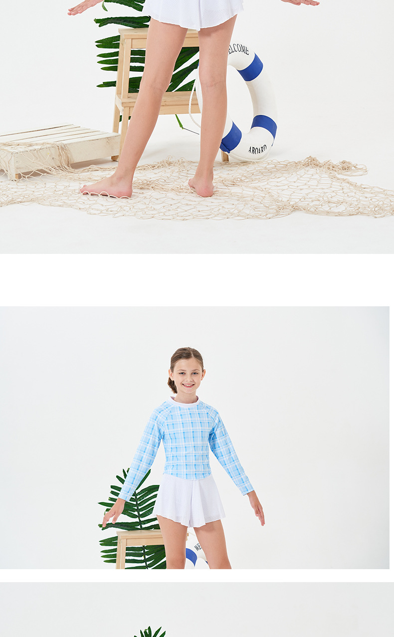 2024 소녀의 새로운 수영복 분할 긴 소매 태양 보호 빠른 건조 수영 스플릿 스커트 복서 보수적 인 청소년