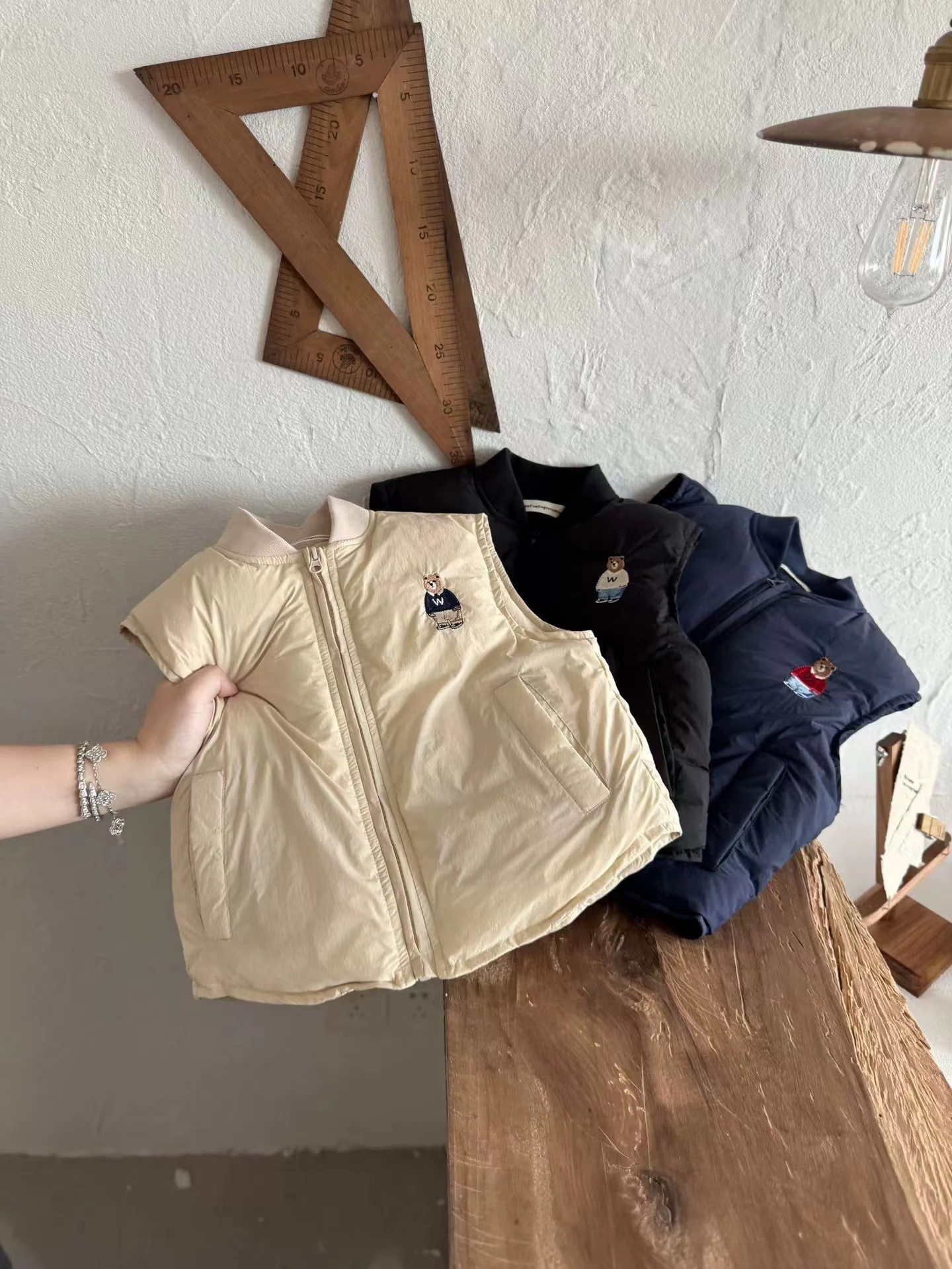 어린이 조끼 겨울 새로운 두꺼운 다운 재킷 코트 소년과 소녀 아기 만화 곰 조끼 코트 패션스토어 가기