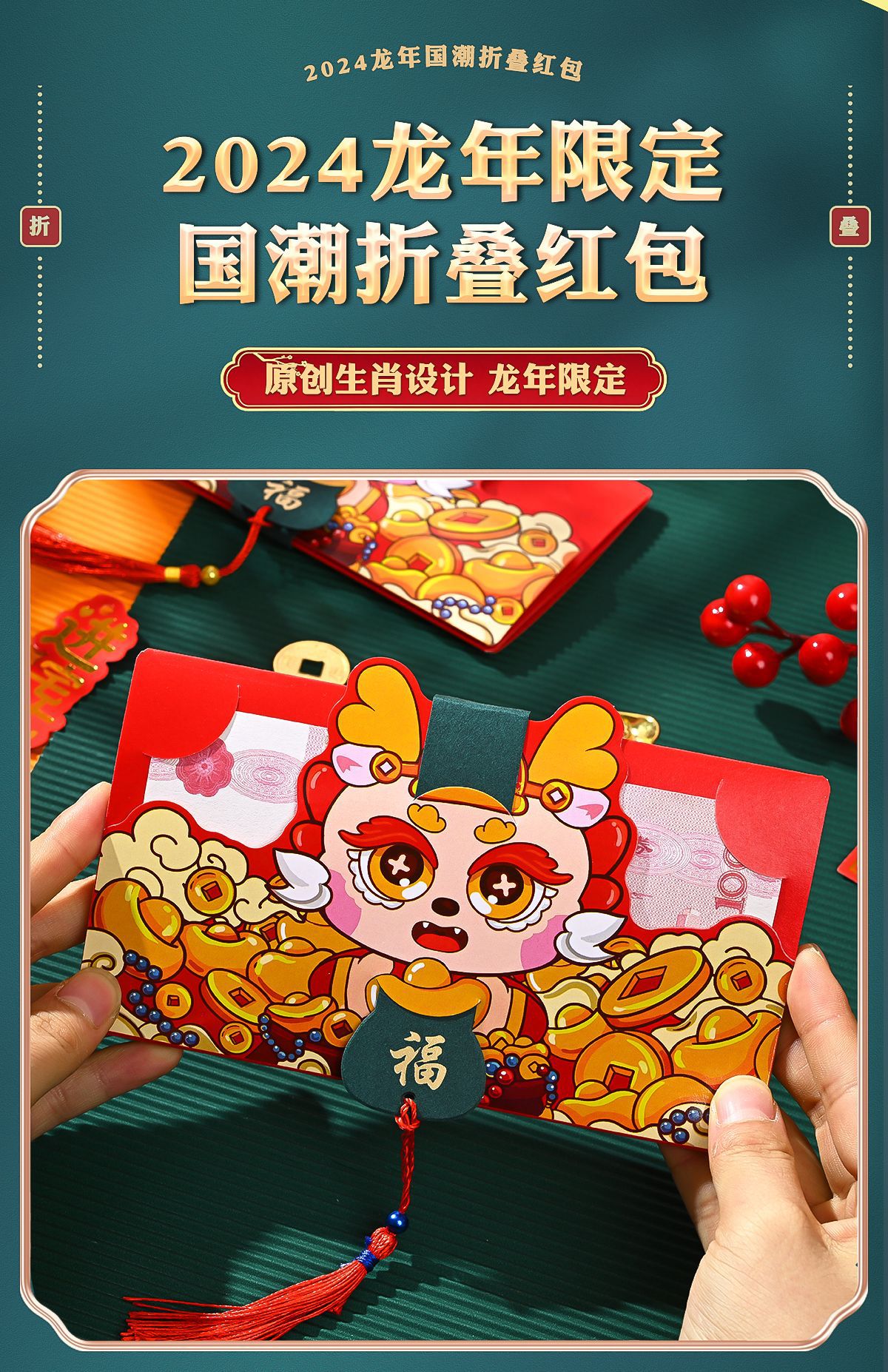 [2024 드래곤 년 접이식 멀티 카드 레드 봉투] 새로운 봄 축제 행운의 돈 입체 만화 빨간 봉투스토어 가기