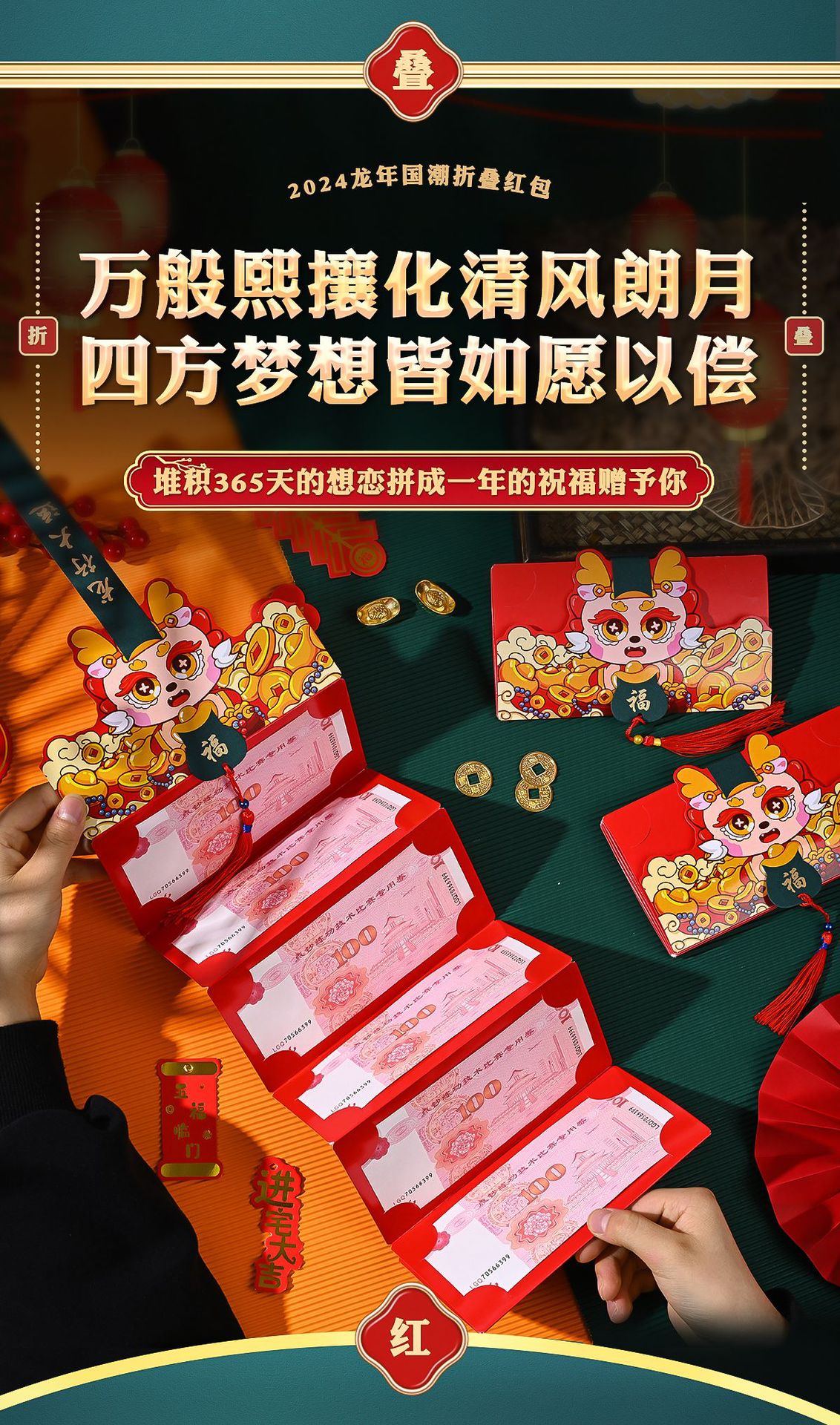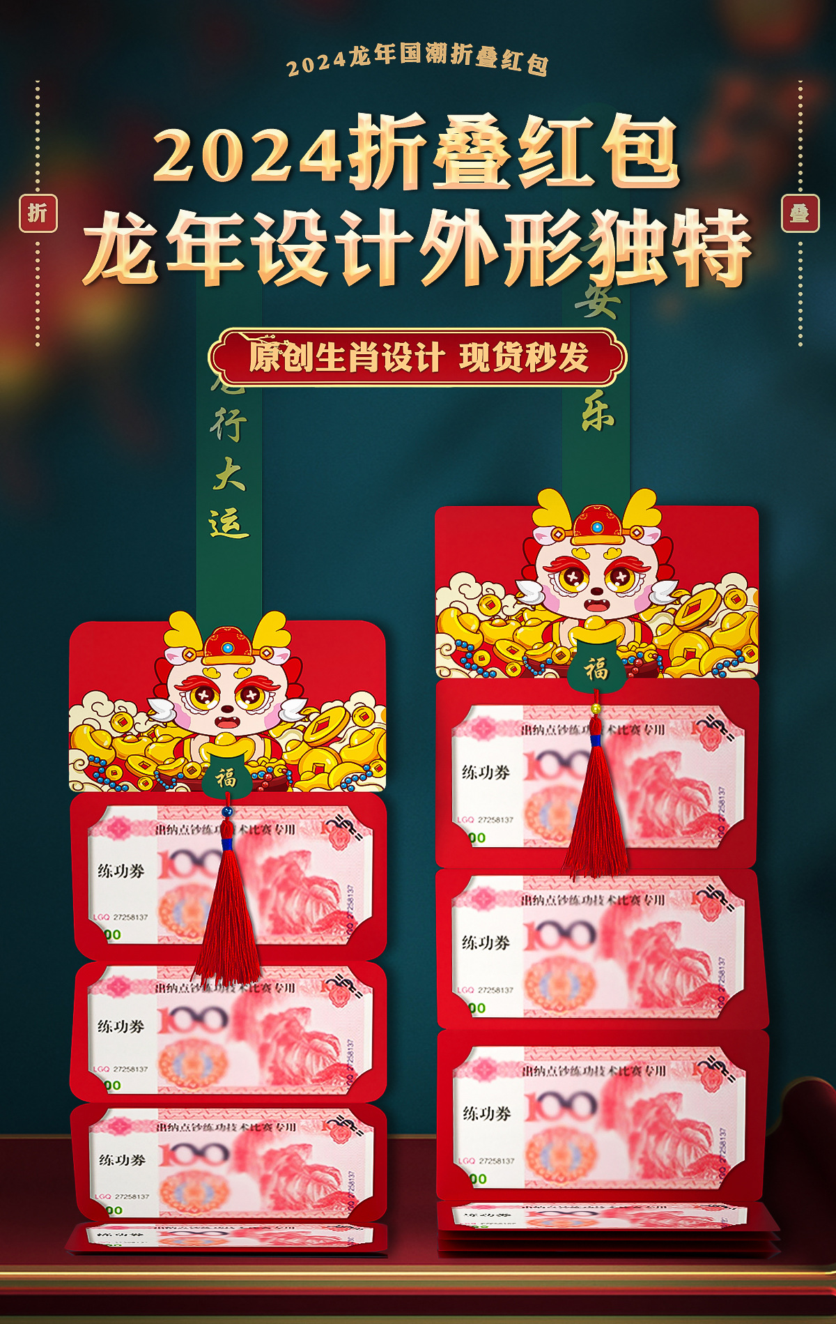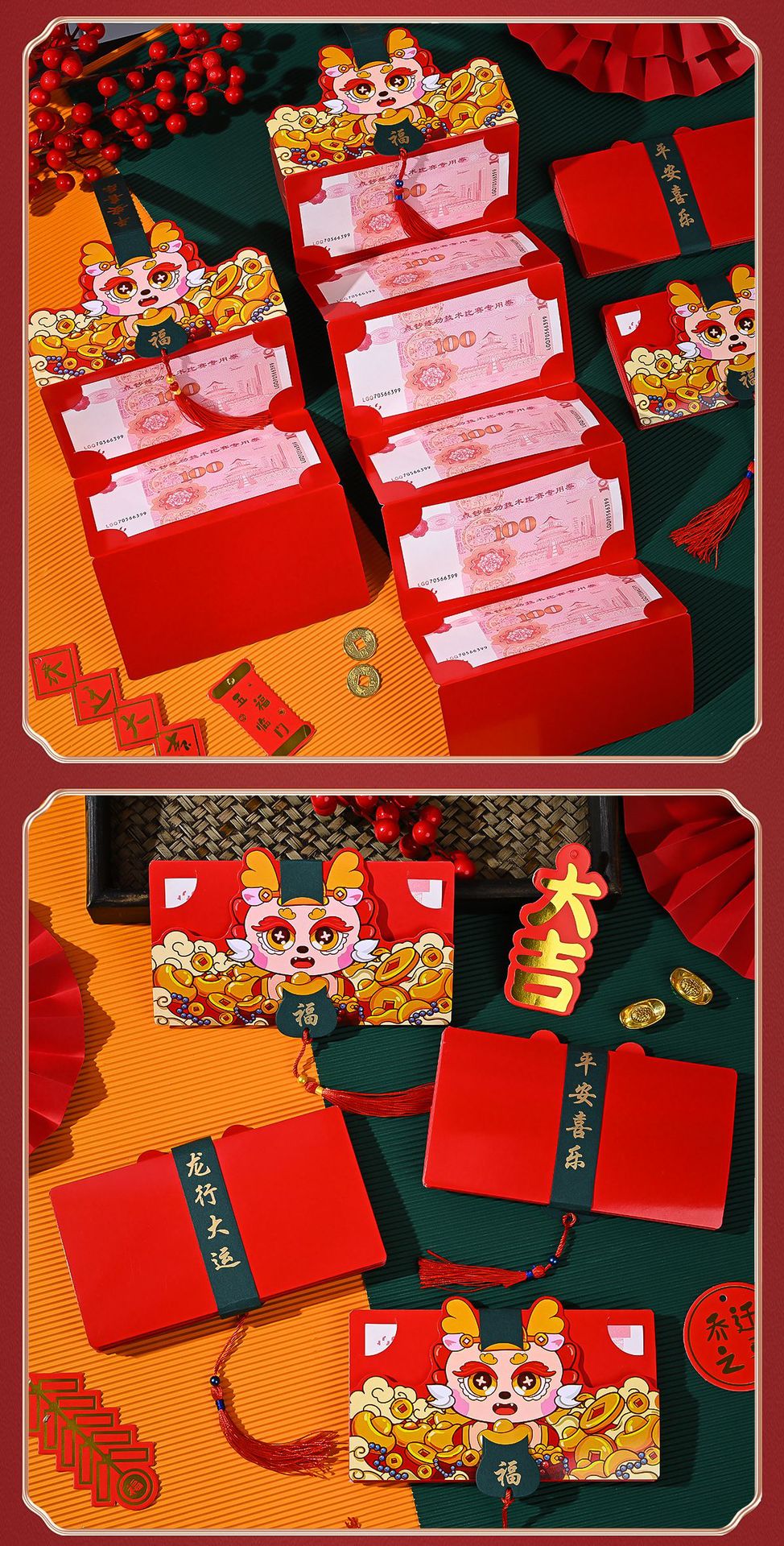 [2024 드래곤 년 접이식 멀티 카드 레드 봉투] 새로운 봄 축제 행운의 돈 입체 만화 빨간 봉투