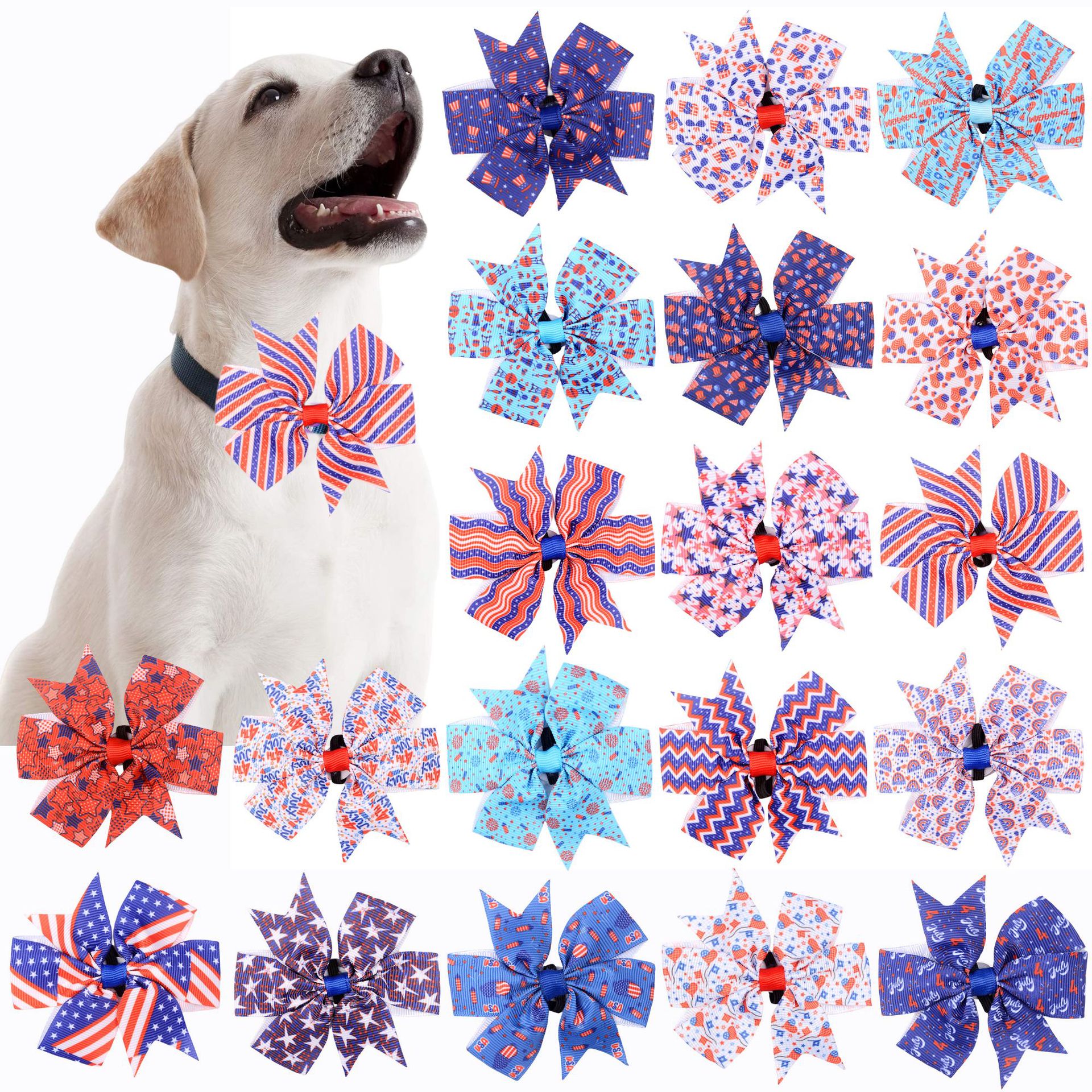 독립 기념일 오각형 별 빨간색과 파란색 줄무늬 갈비뼈 제비 애완 동물 고양이 개 목걸이 장식 휴일 칼라 꽃스토어 가기