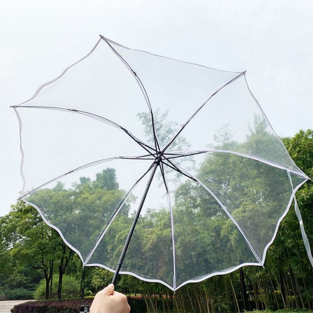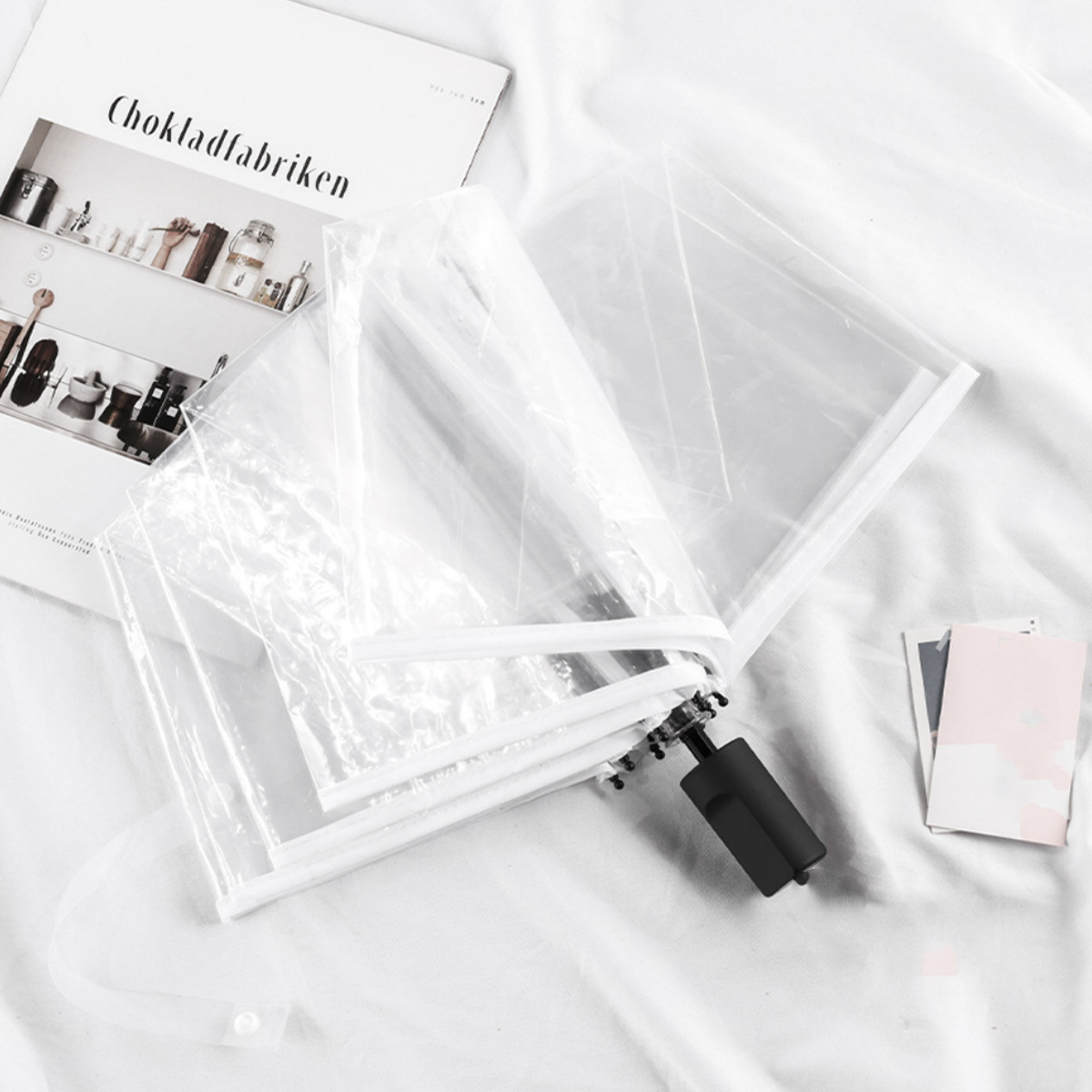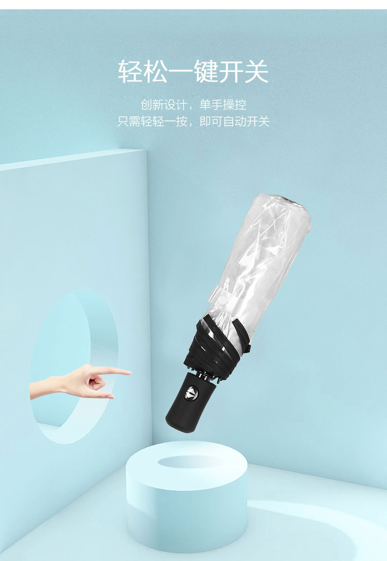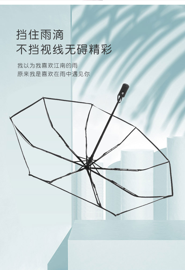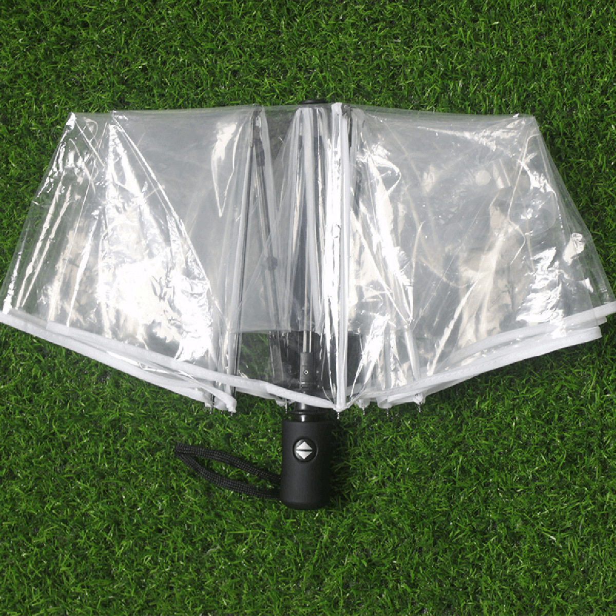 국경 전용 그물 빨간 거리 촬영 자동 작은 신선한 3 배 투명 우산 로고 광고 접이식 투명 우산