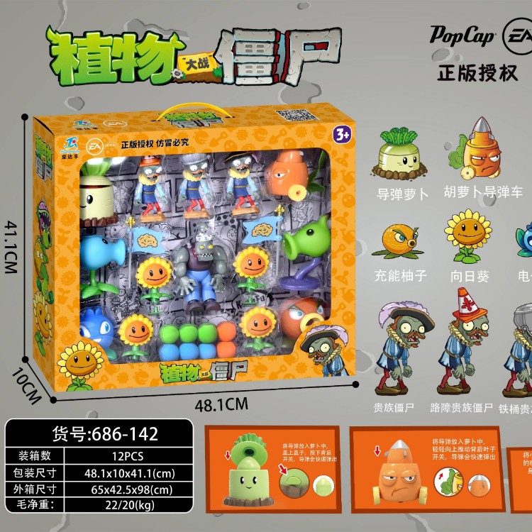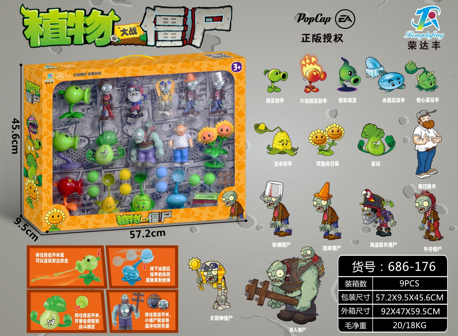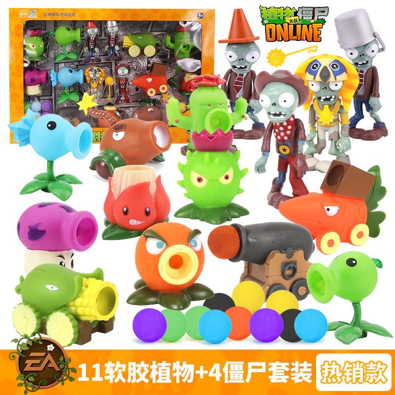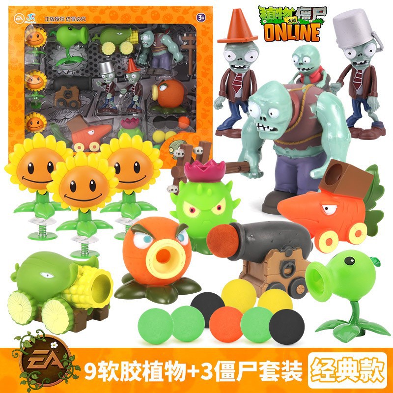Rongdafeng Plant vs 좀비 장난감 어린이 게임 장면 출시 부드러운 고무 완두콩 쉘 모델 세트스토어 가기