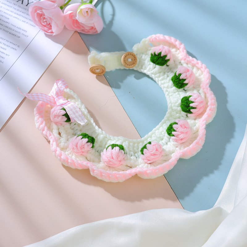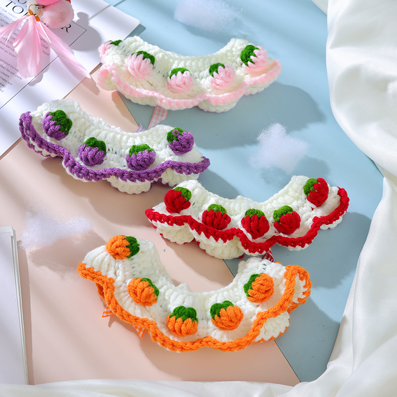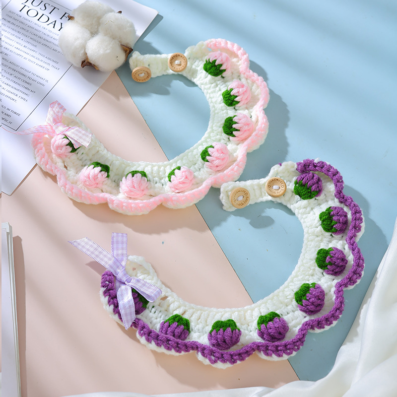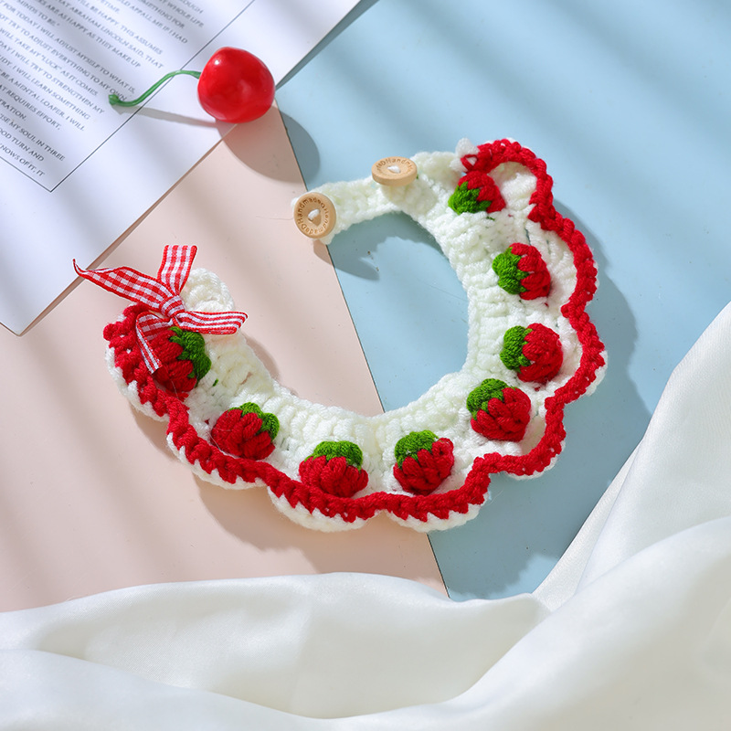 애완 동물 고양이 개 목걸이 딸기 양모 니트 스카프 인터넷 연예인 같은 애완 동물 미끄러운 수건 개 옷 액세서리