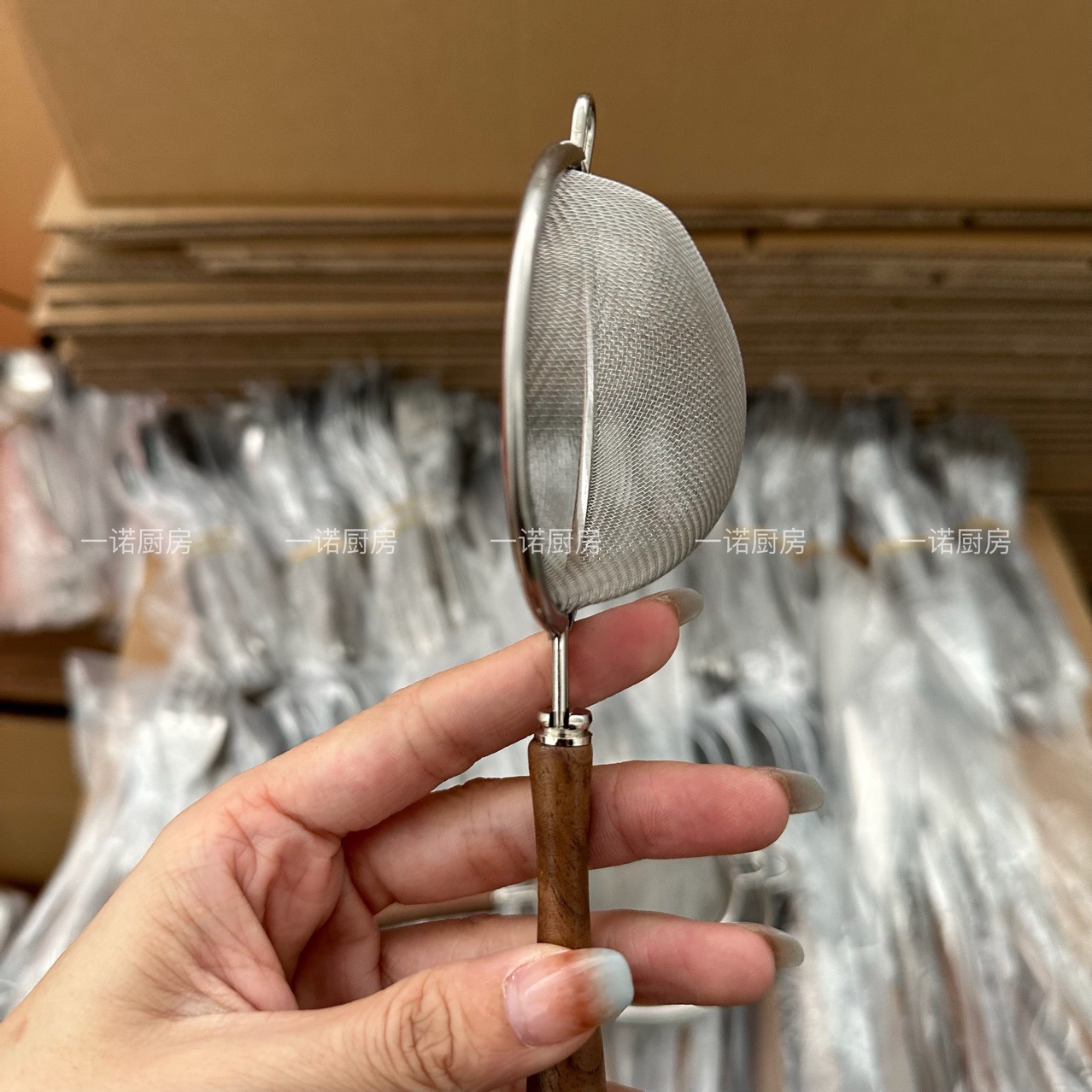 Yinuo 주방 호두 304 나무 손잡이 차 여과기 차 필터 화면 창조적 인 일본 차스토어 가기
