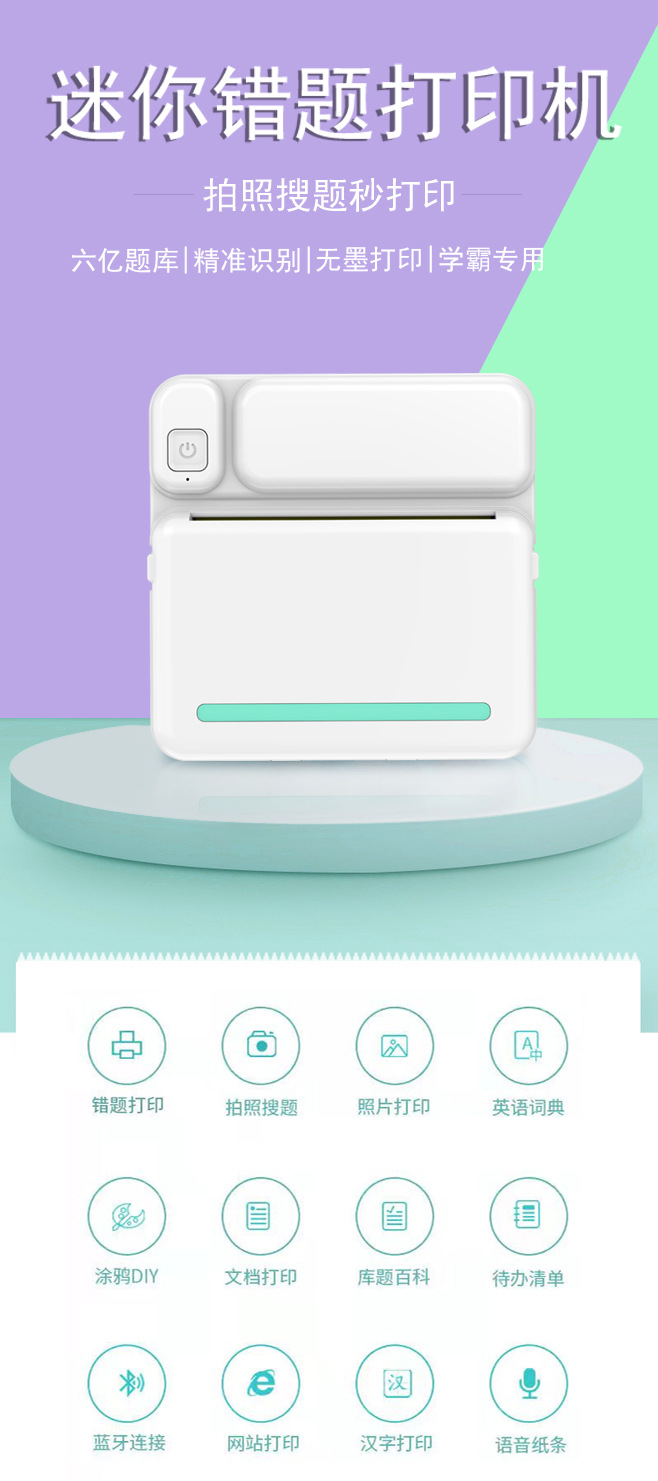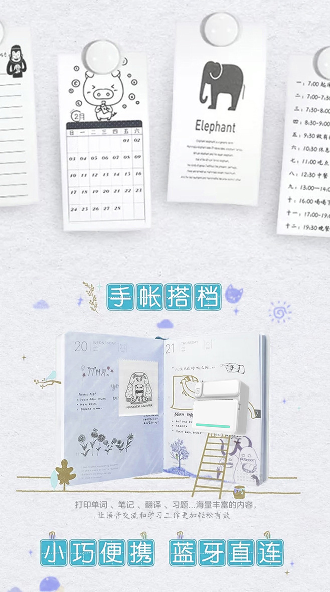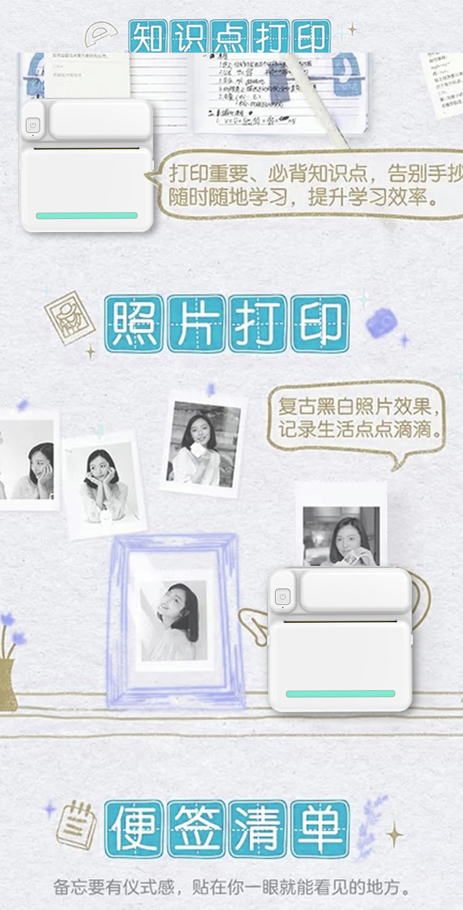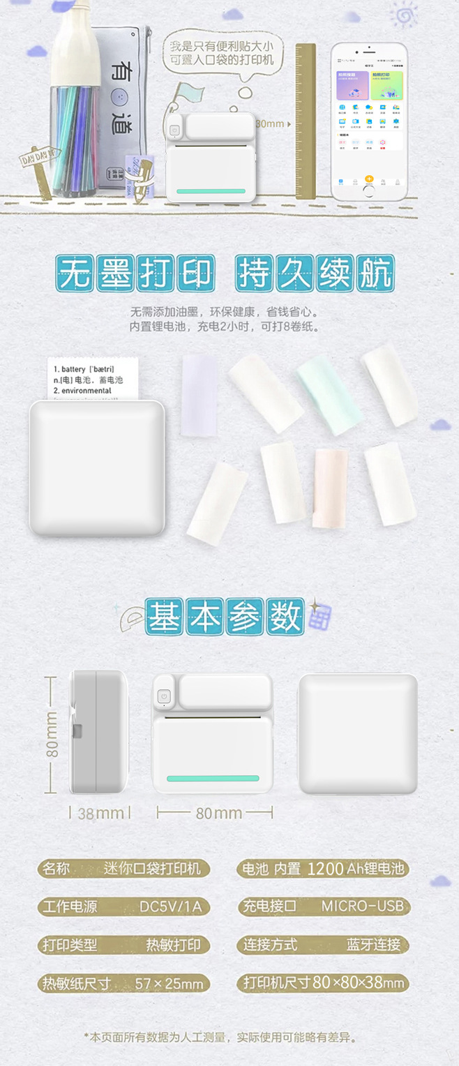 出厂标配:主机+充电线+说明书+打印纸1卷