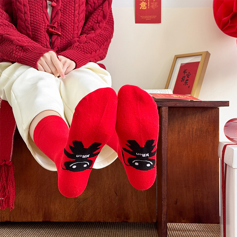빨간 양말 출생 년 양말 중반 송아지 양말 빨간 양말 남성과 여성 커플 스타일 붉은 숙녀 주지 양말 도매