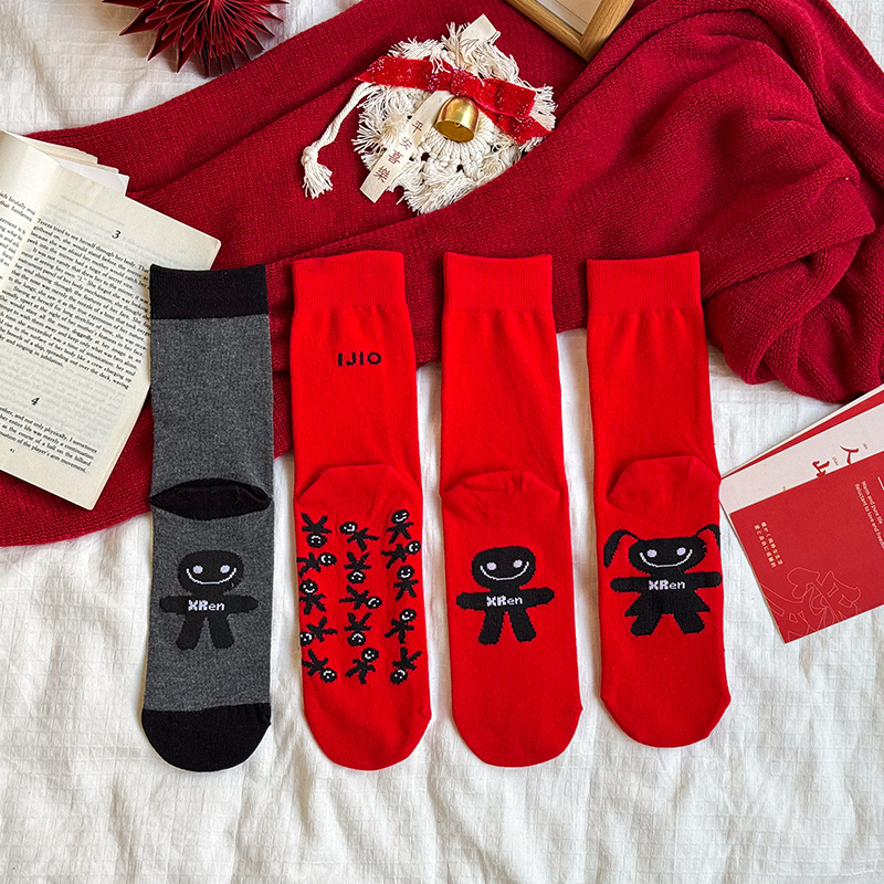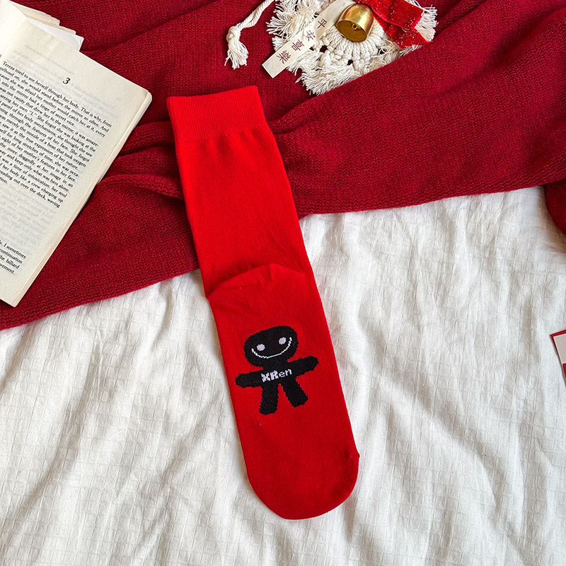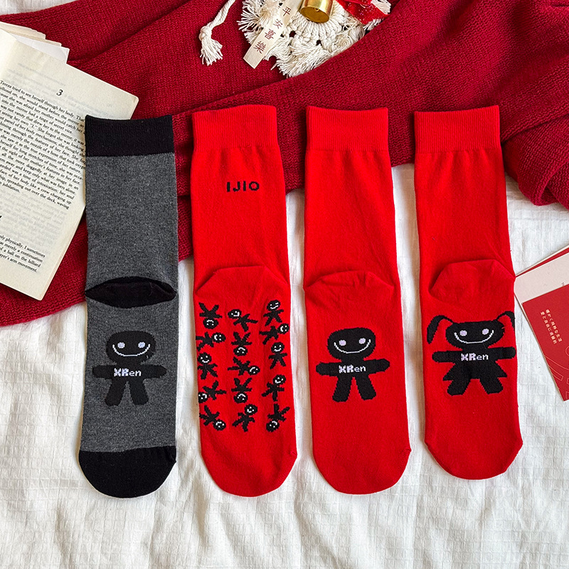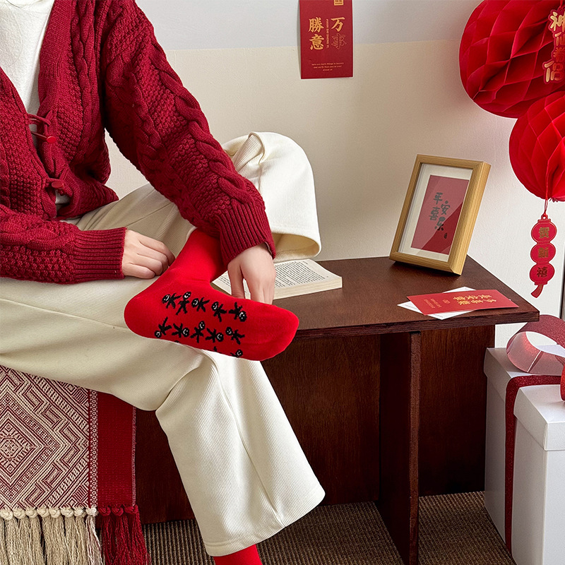 빨간 양말 출생 년 양말 중반 송아지 양말 빨간 양말 남성과 여성 커플 스타일 붉은 숙녀 주지 양말 도매스토어 가기