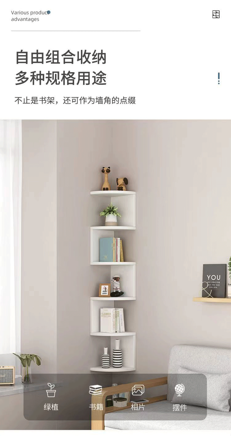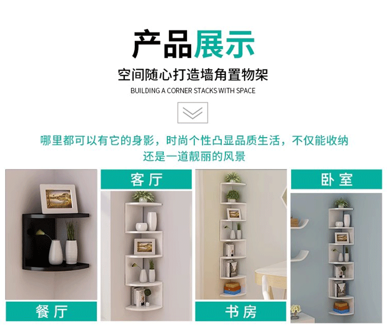 코너 스토리지 랙 벽 책장 주방 벽 교수형 스토리지 랙 다층 가정용 비 천공 벽 파티션 레이어드 보드