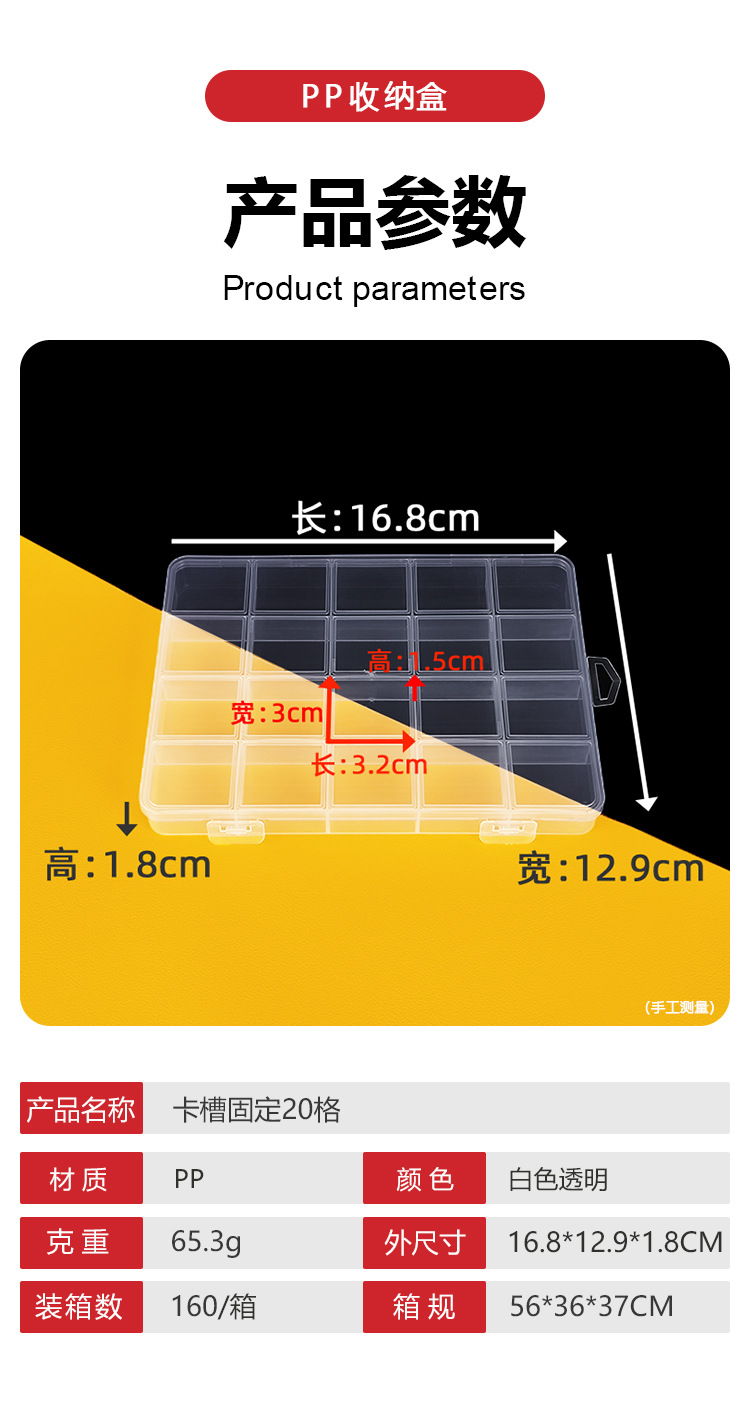 고정 카드 슬롯 20 그리드 투명 구획 저장 상자 샘플 부품 pp 디스플레이 상자 정렬 부품 상자