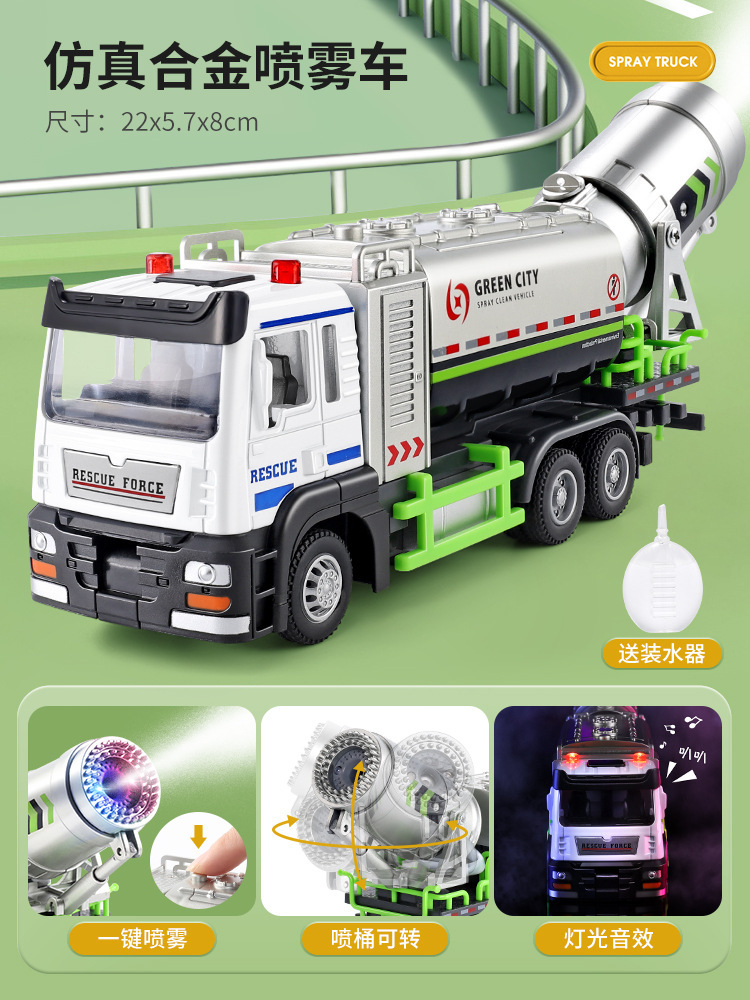 어린이 시뮬레이션 스프링클러 장난감 자동차 위생 차량 합금 엔지니어링 차량 전염병 예방 먼지 억제 스프레이 자동차 모델 소년스토어 가기