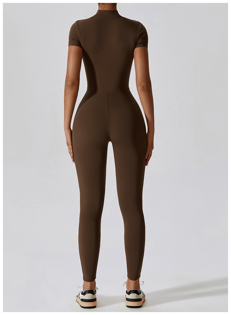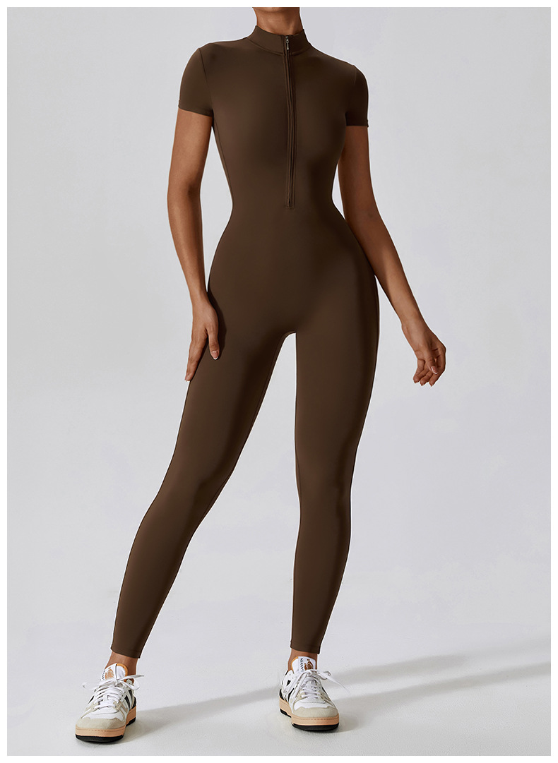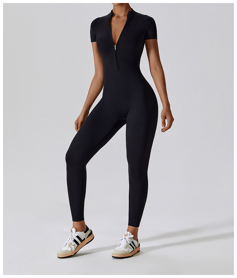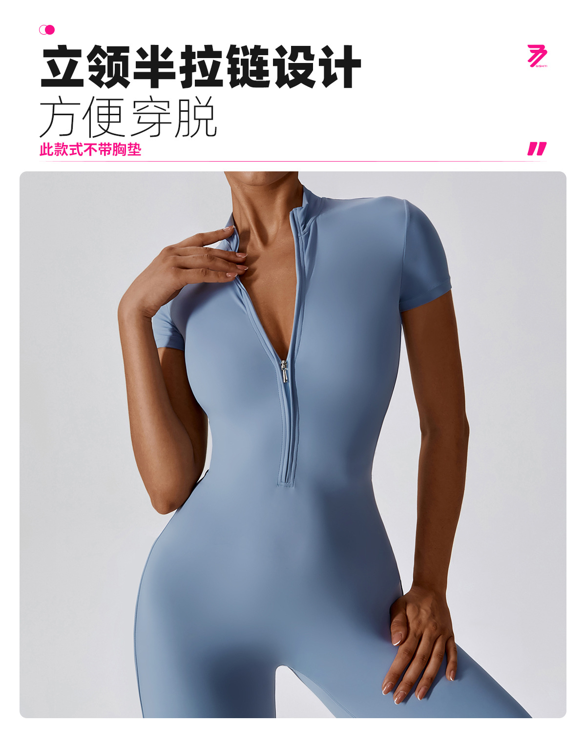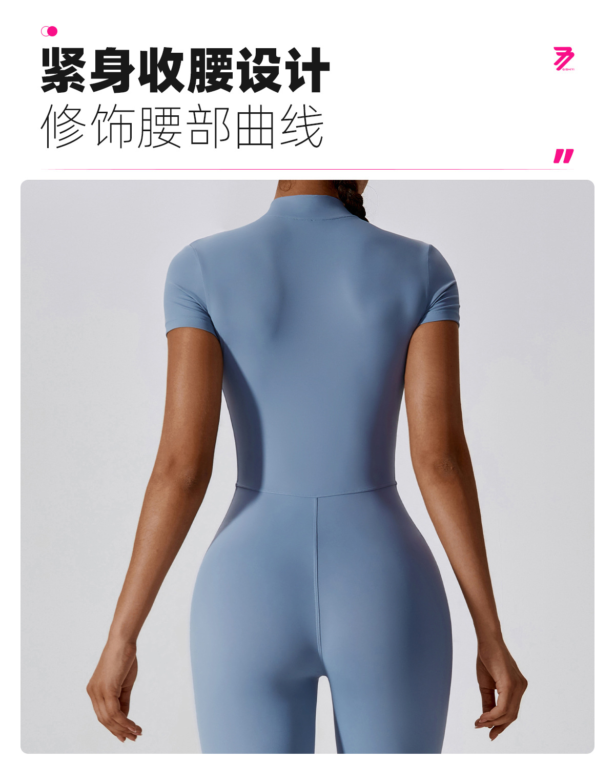 유럽과 미국의 국경 간 지퍼 반팔 누드 요가 점프 슈트 여성용 피트니스 스포츠 점프 슈트 8305