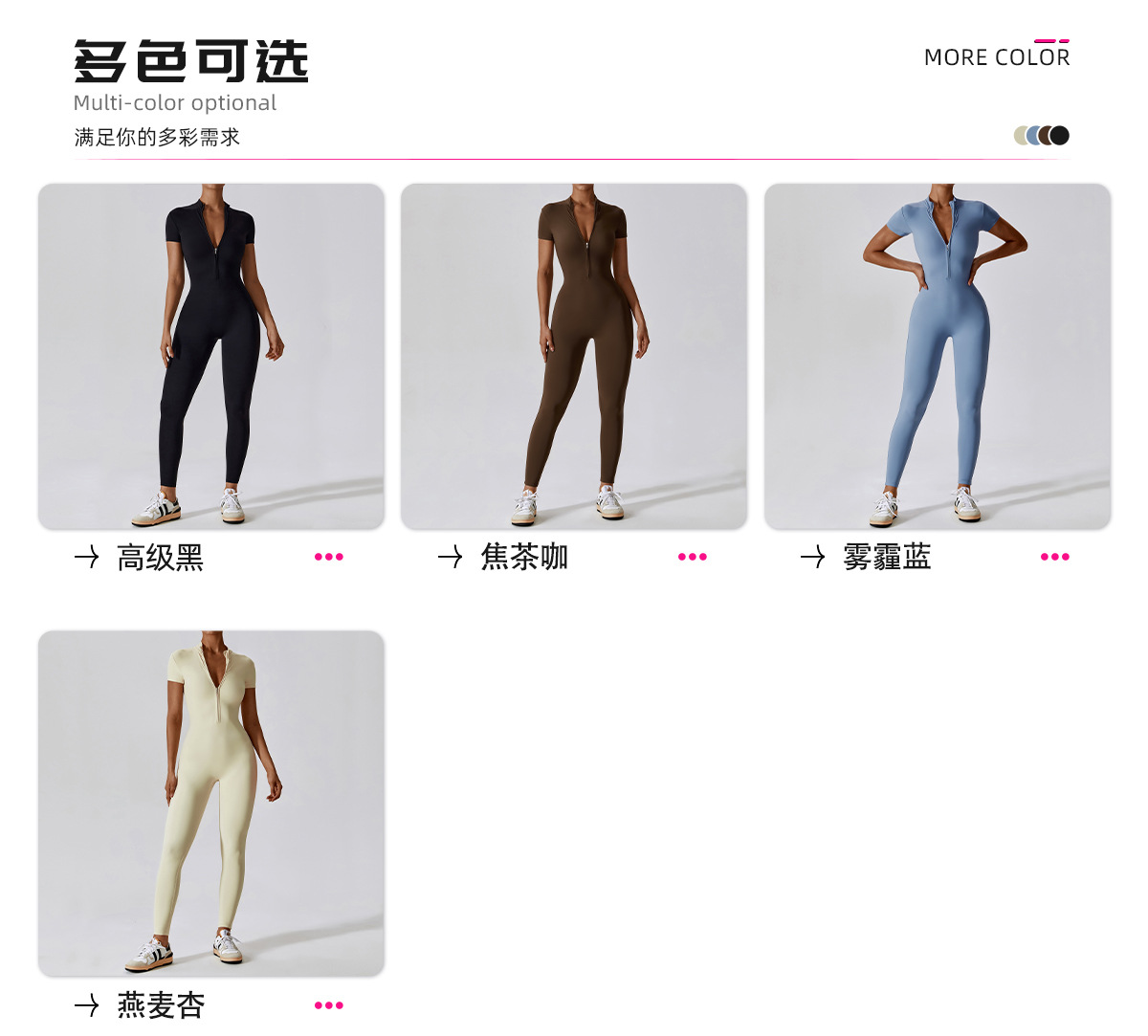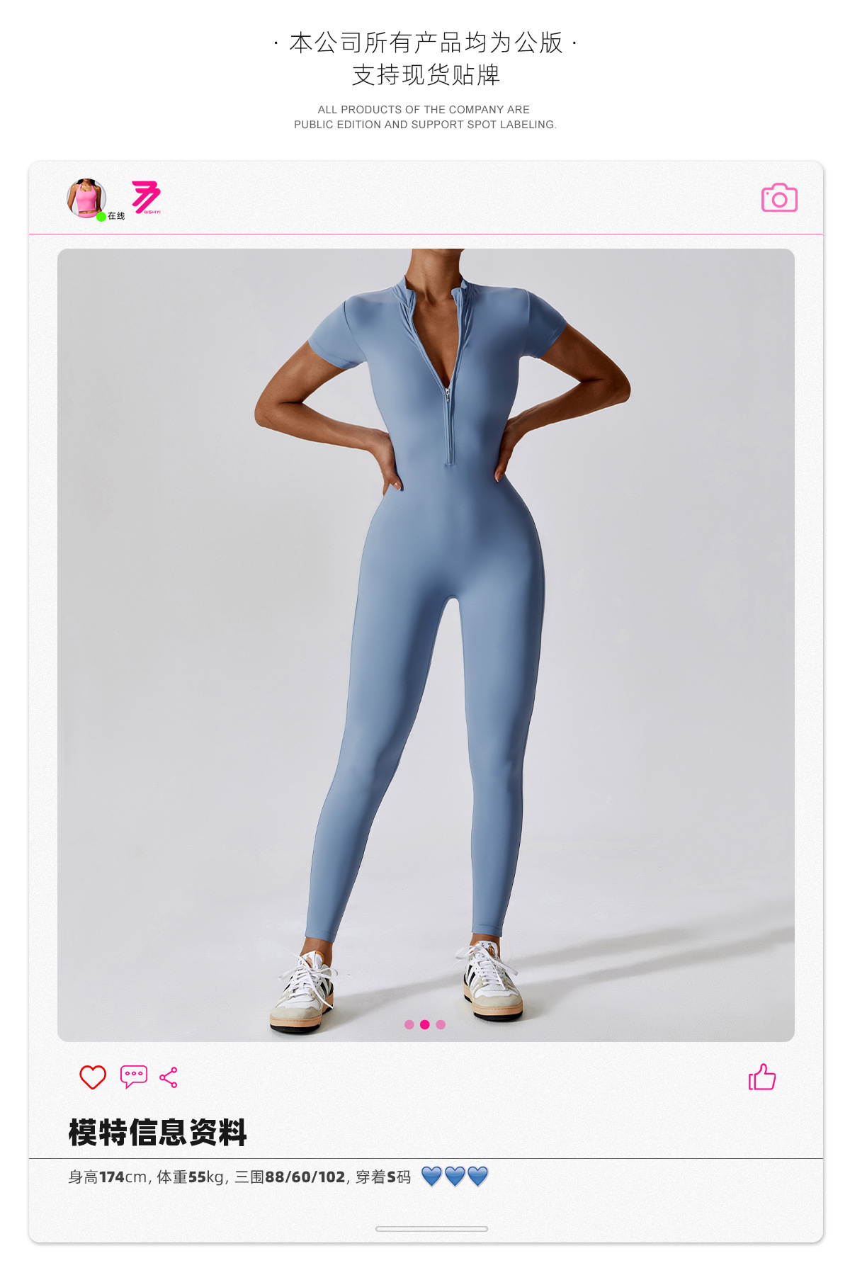 유럽과 미국의 국경 간 지퍼 반팔 누드 요가 점프 슈트 여성용 피트니스 스포츠 점프 슈트 8305스토어 가기