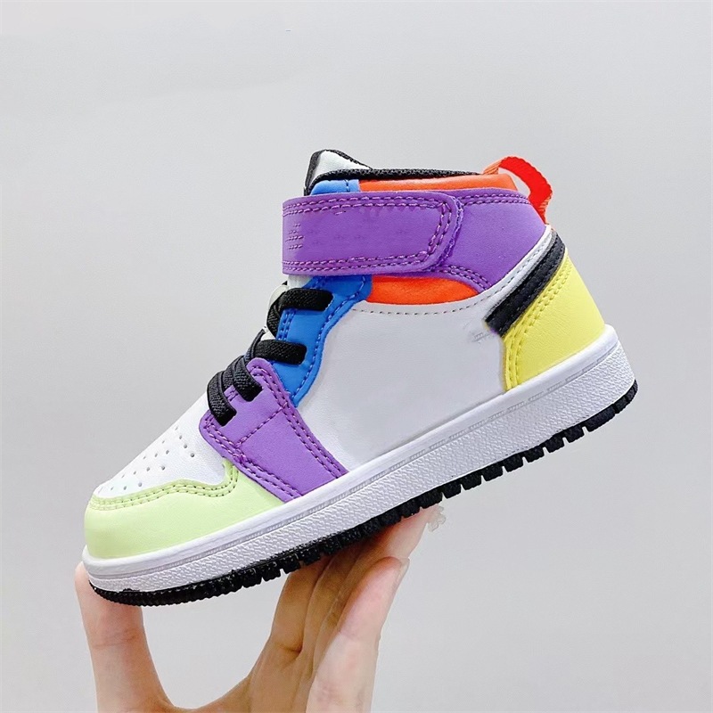 AJ1 어린이 신발 후크 및 루프 프리 레이스 업 조 1 1 층 소 가죽 어린이 큰 어린이 학생 스포츠 신발 푸티 안 도매스토어 가기