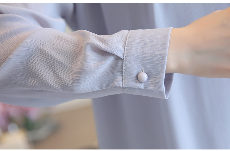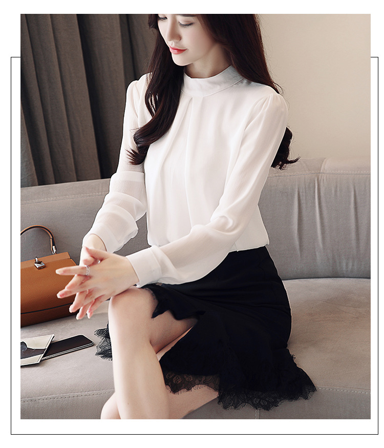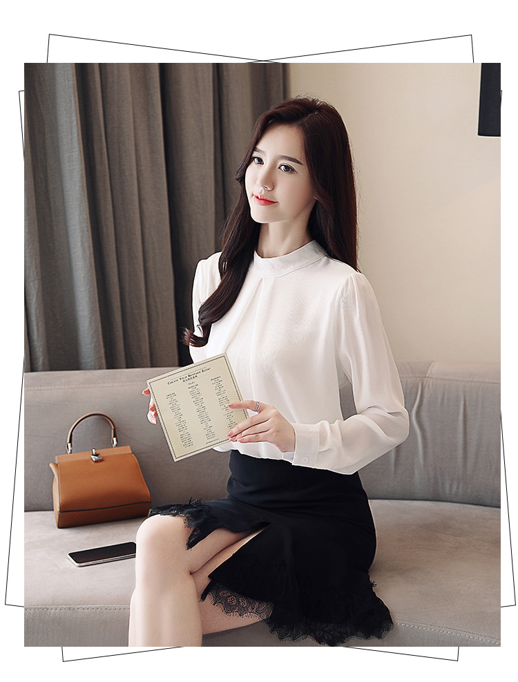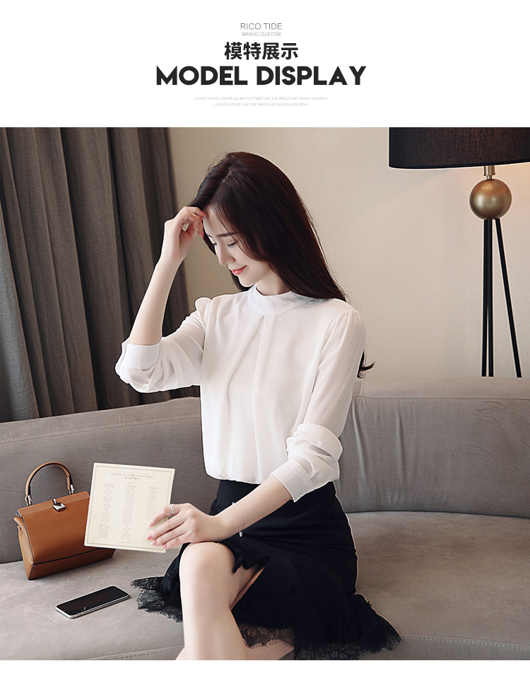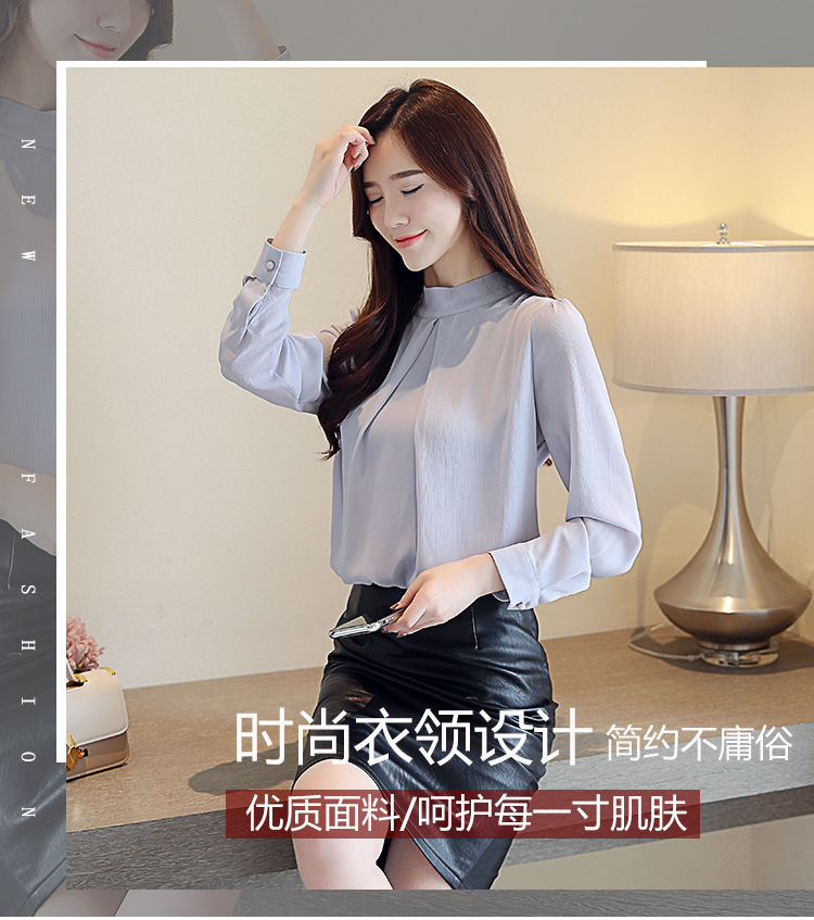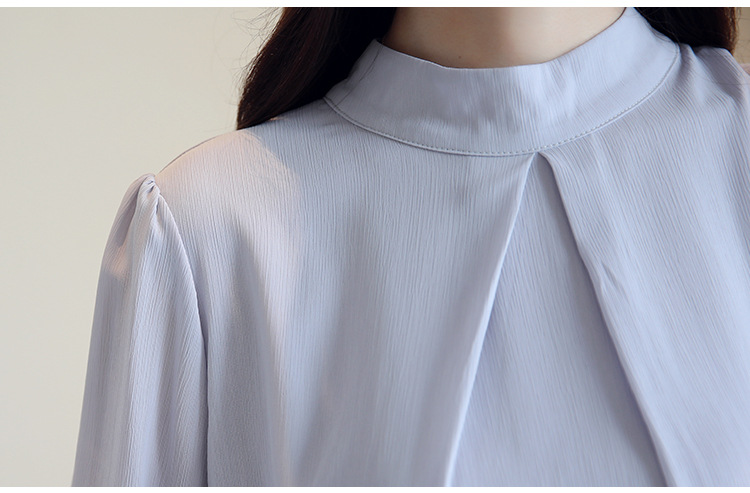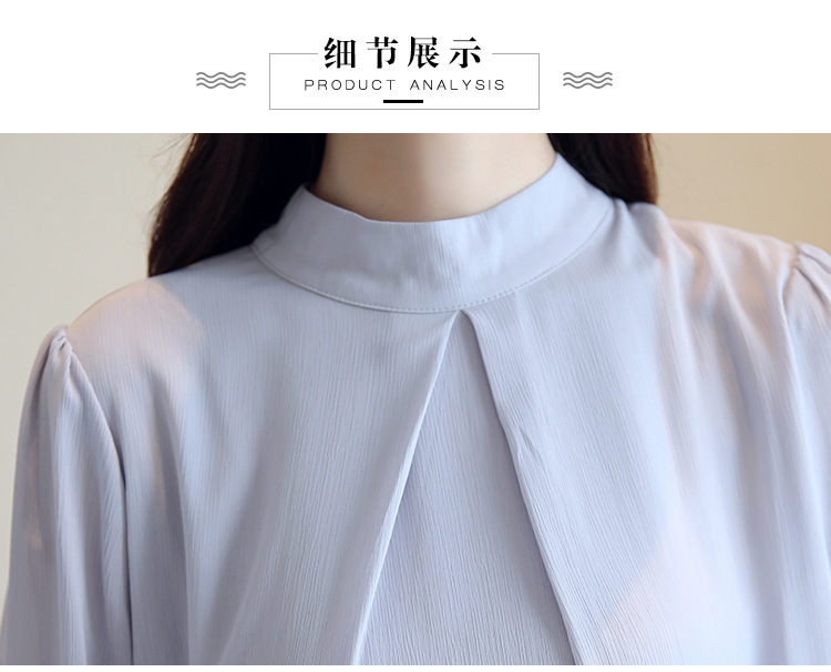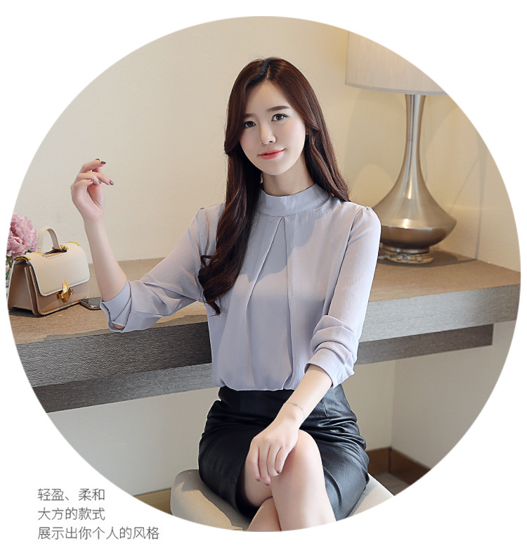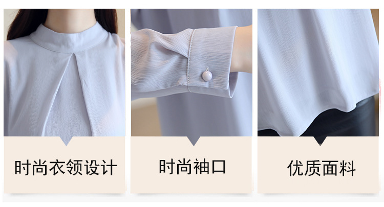 리얼 샷 23 가을 한국 스타일 긴 소매 느슨한 배꼽 커버 쉬폰 셔츠 탑 스탠드 칼라 유행 올 매치 우아한 서양식 작은 셔츠