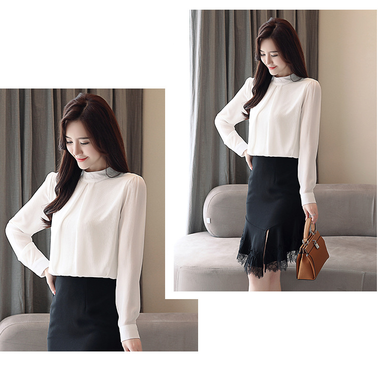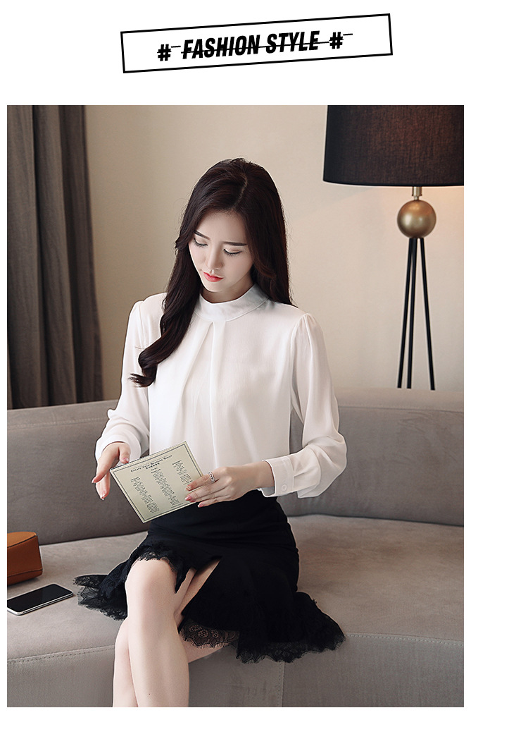 리얼 샷 23 가을 한국 스타일 긴 소매 느슨한 배꼽 커버 쉬폰 셔츠 탑 스탠드 칼라 유행 올 매치 우아한 서양식 작은 셔츠스토어 가기