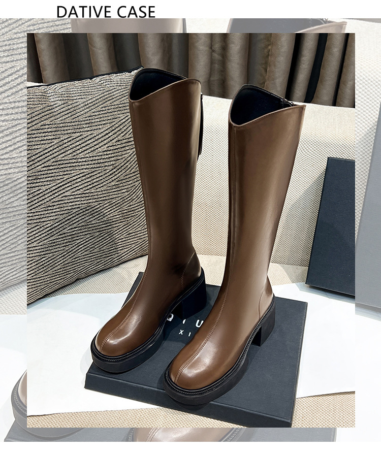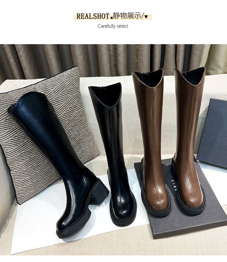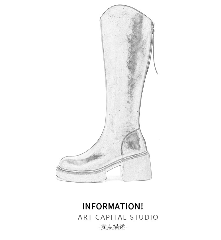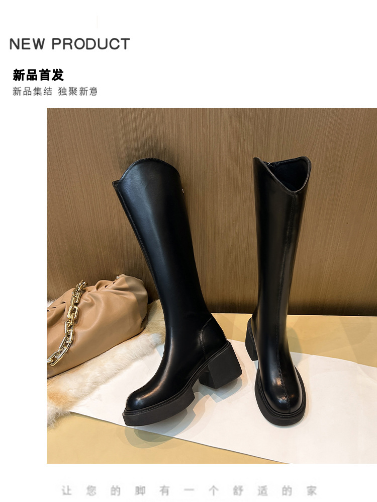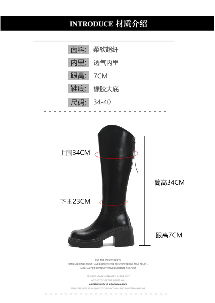 휘센~스몰 사이즈 V넥 롱부츠 여성 키높이 라이더 부츠 뒷지퍼 마틴부츠 굽높이 미끄럼방지 내마모성 방수스토어 가기