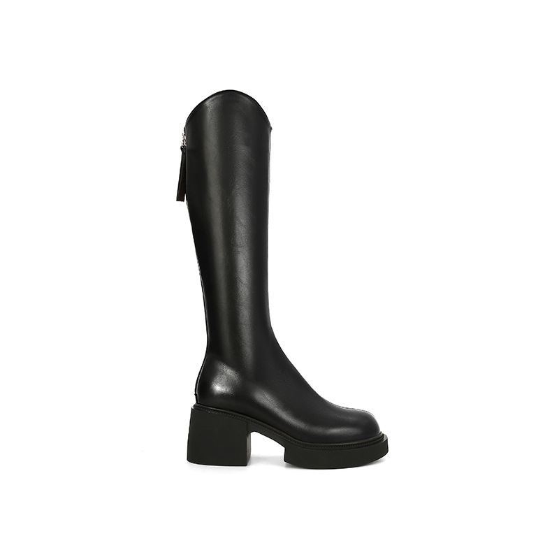휘센~스몰 사이즈 V넥 롱부츠 여성 키높이 라이더 부츠 뒷지퍼 마틴부츠 굽높이 미끄럼방지 내마모성 방수