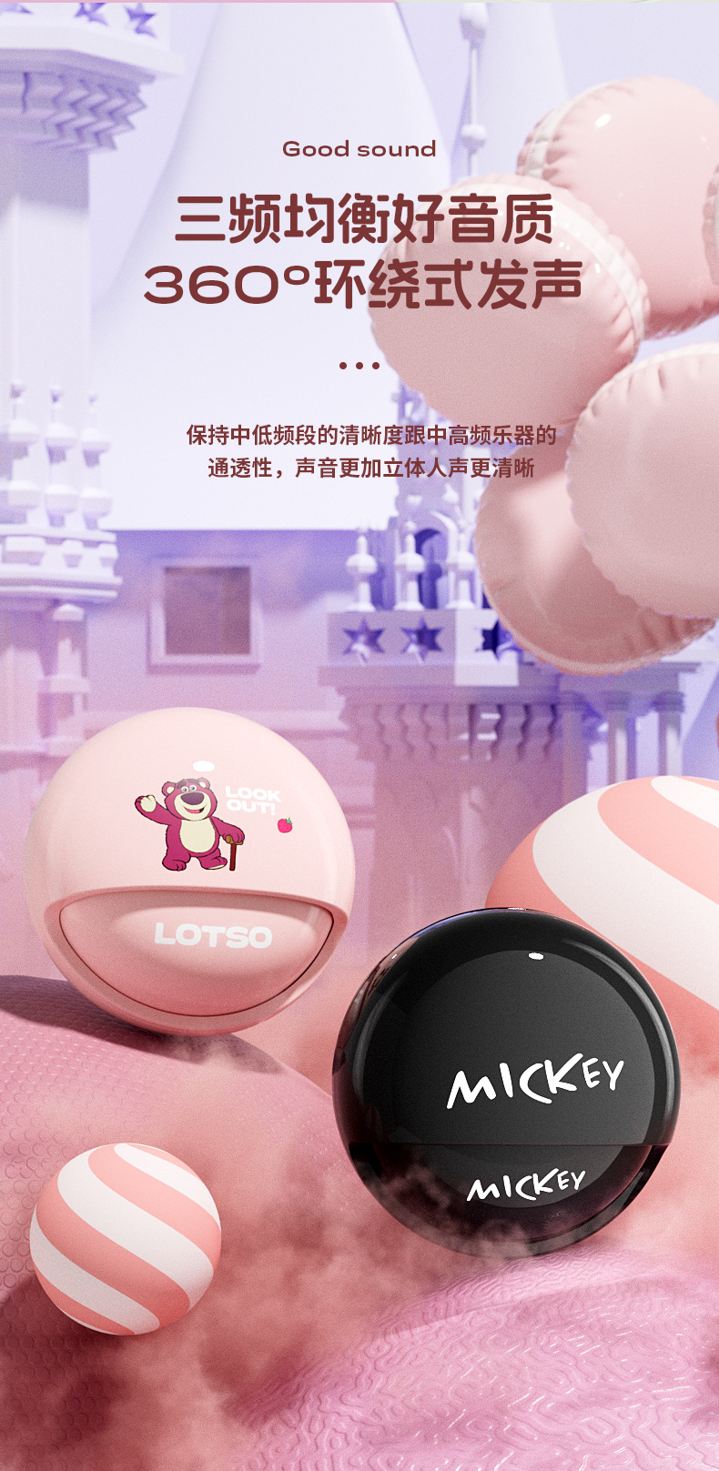 디즈니 블루투스 헤드셋 인 이어 높은 찾고 스포츠 게임 소음 감소 HIFI 음질 학생 남성과 여성 같은 스타일