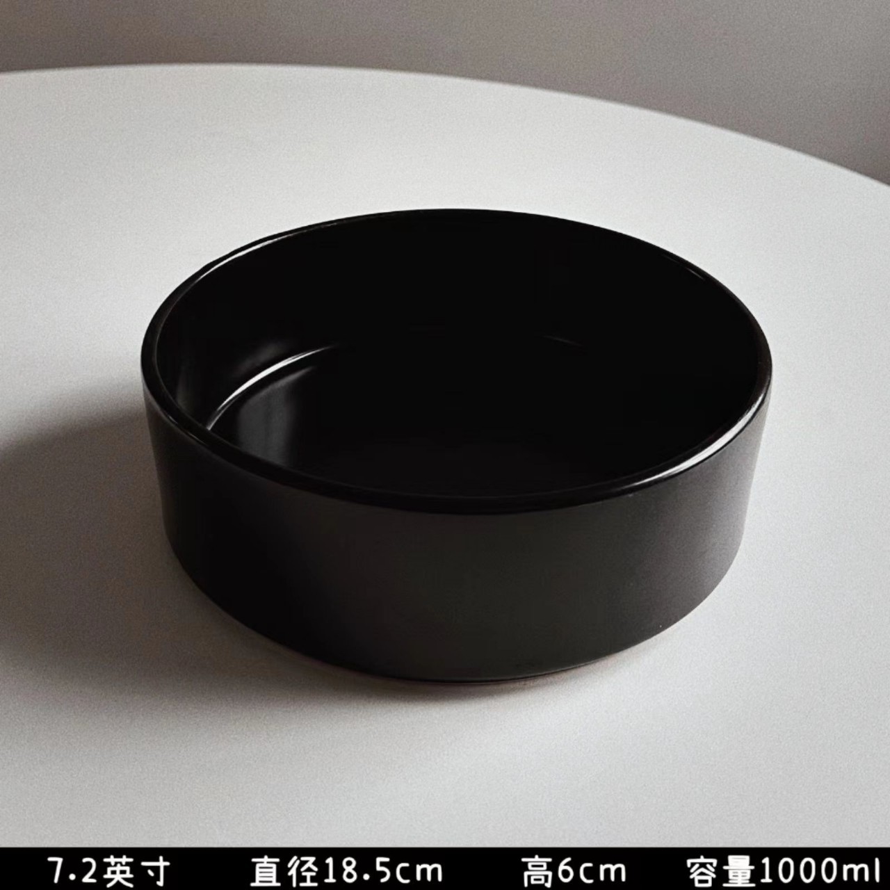 검은 세라믹 그릇 고양이 마시는 그릇 순수한 검은 가정용 국수 그릇 대용량 간단한 애완 동물 서양 음식 접시 그릇