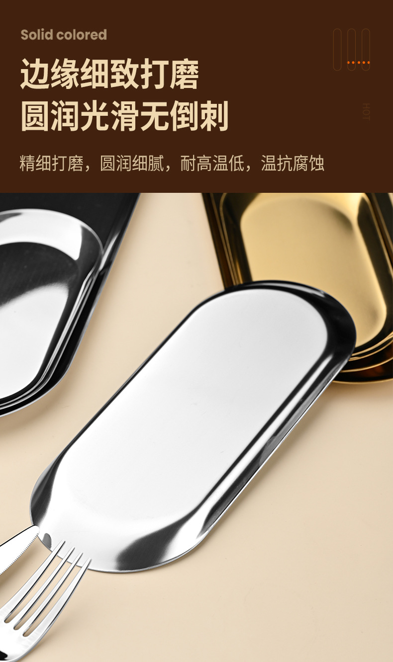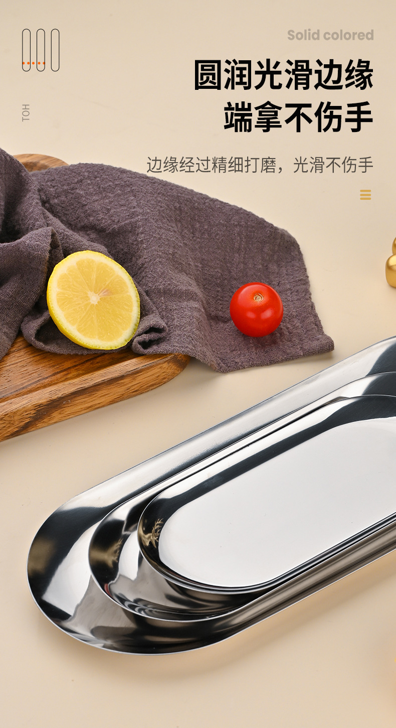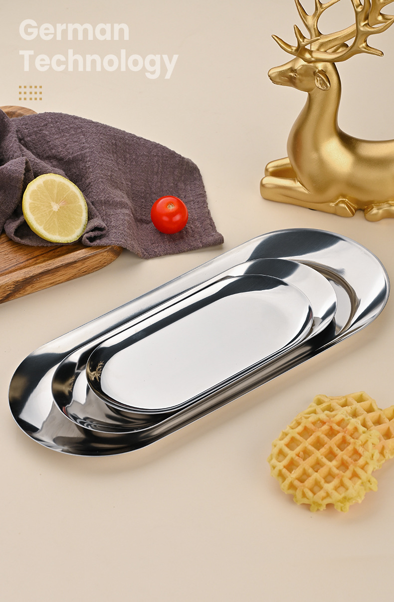 높은 모양의 스테인레스 스틸 한국식 타원형 바베큐 접시 보석 스시 레스토랑 디저트 트레이