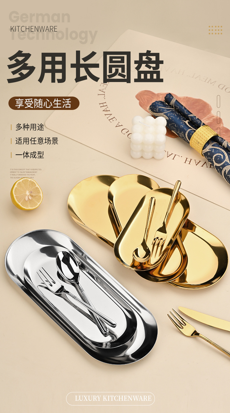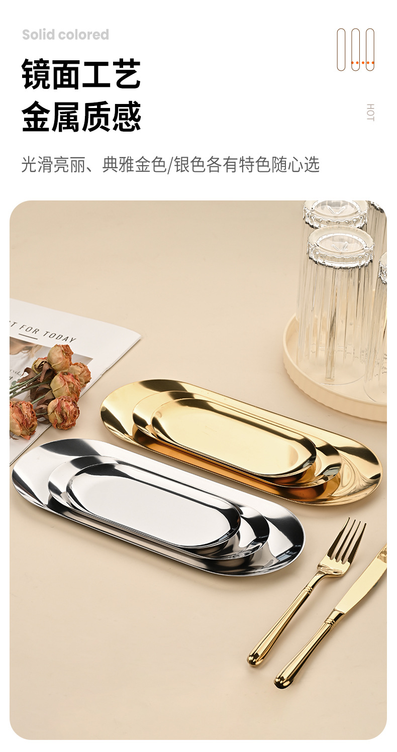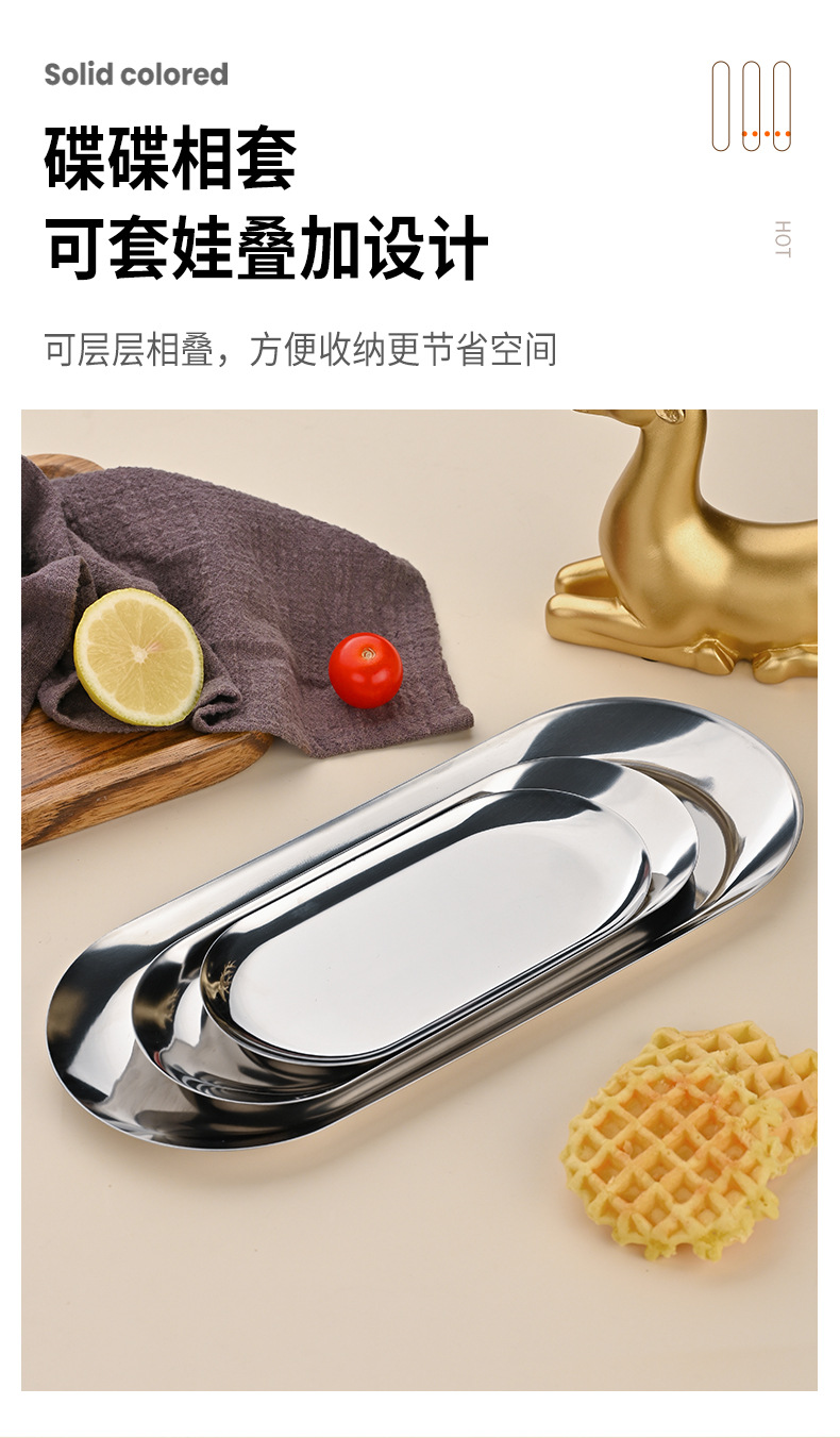 높은 모양의 스테인레스 스틸 한국식 타원형 바베큐 접시 보석 스시 레스토랑 디저트 트레이