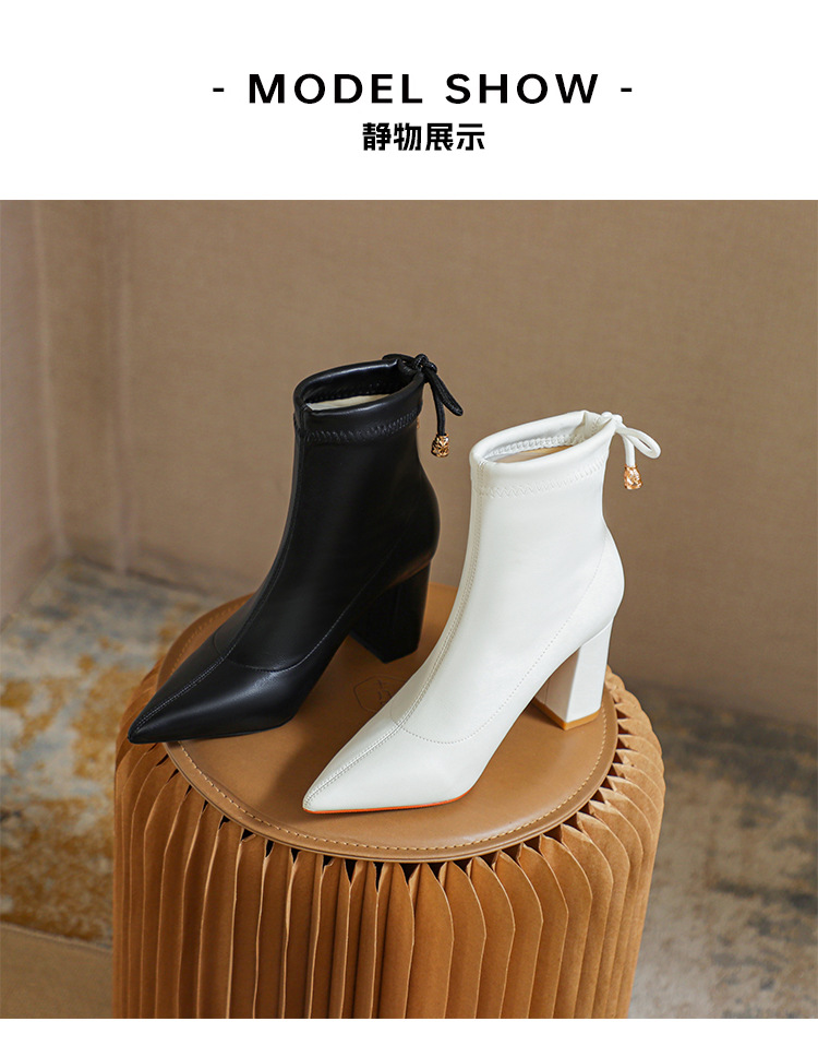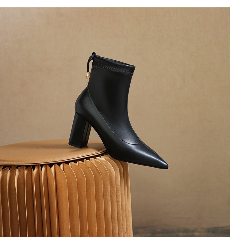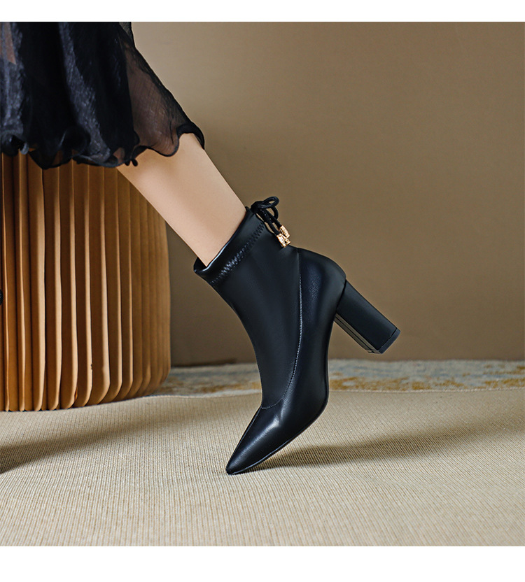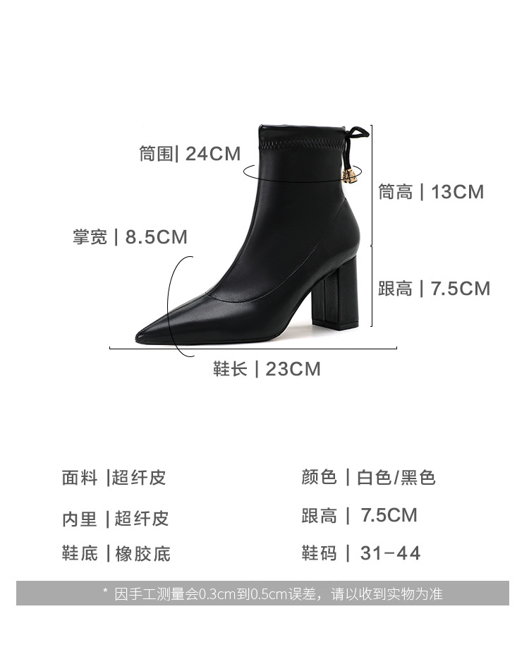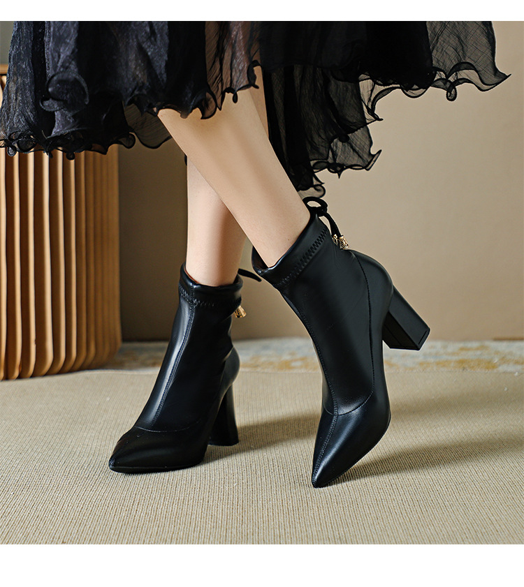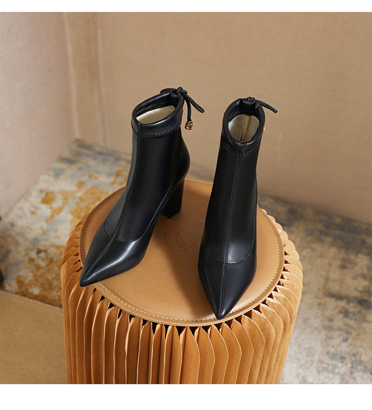 Xyp-cd 가을과 겨울 가죽 스트레치 발목 부츠 뾰족한 발가락 청키 힐 다목적 슬리밍 하이힐 크기스토어 가기