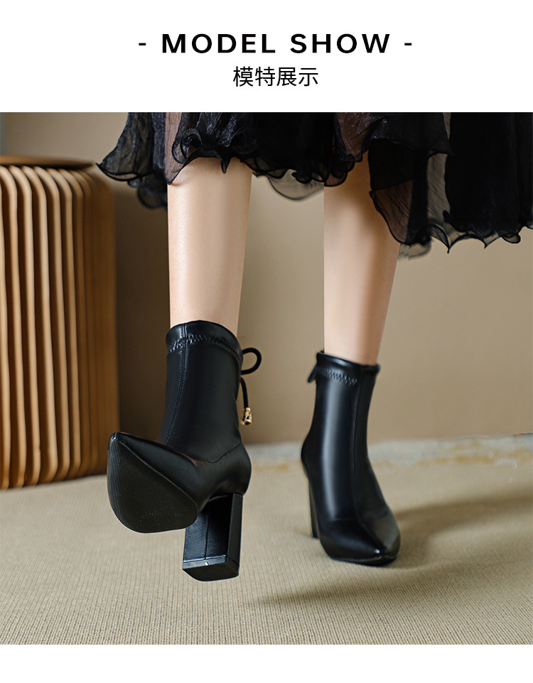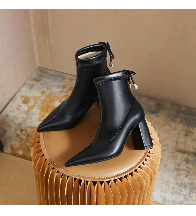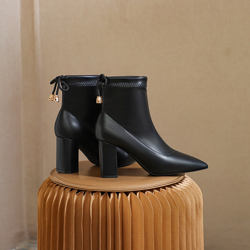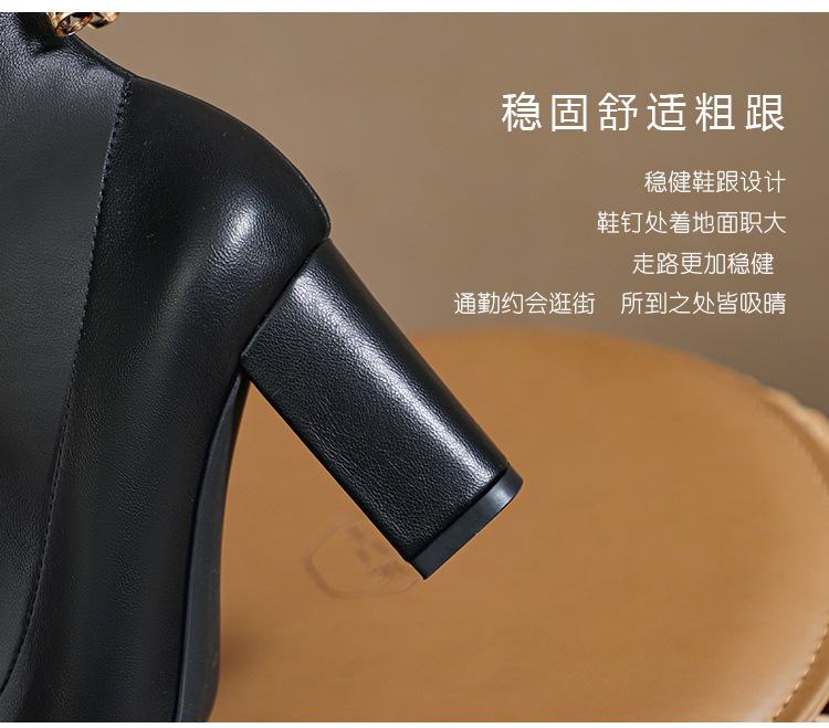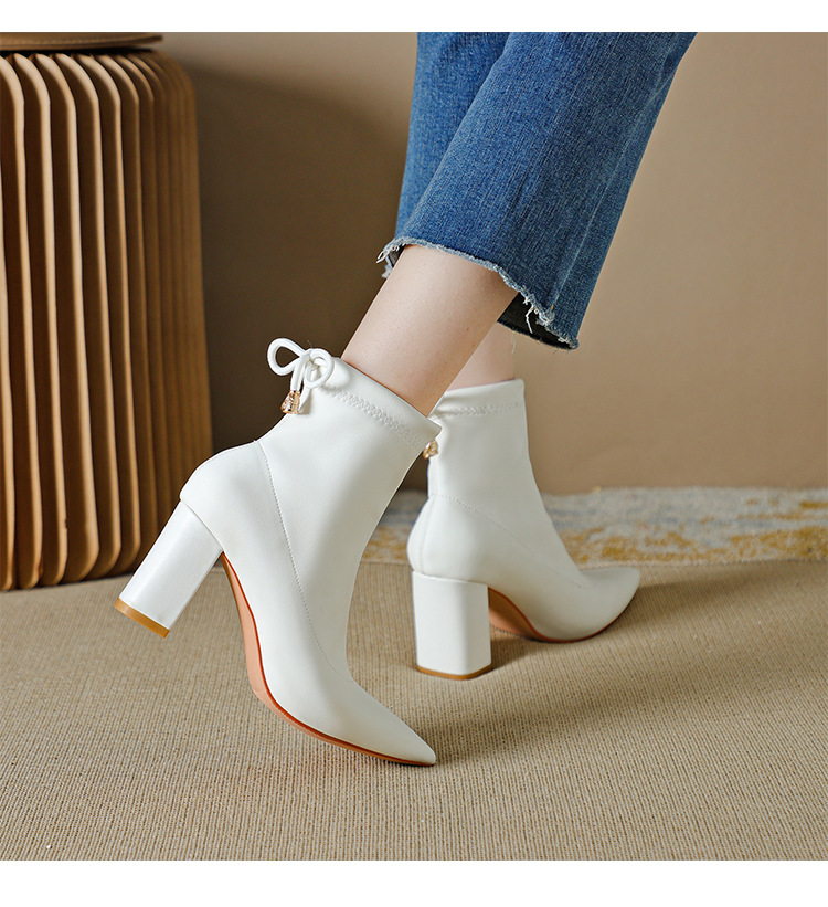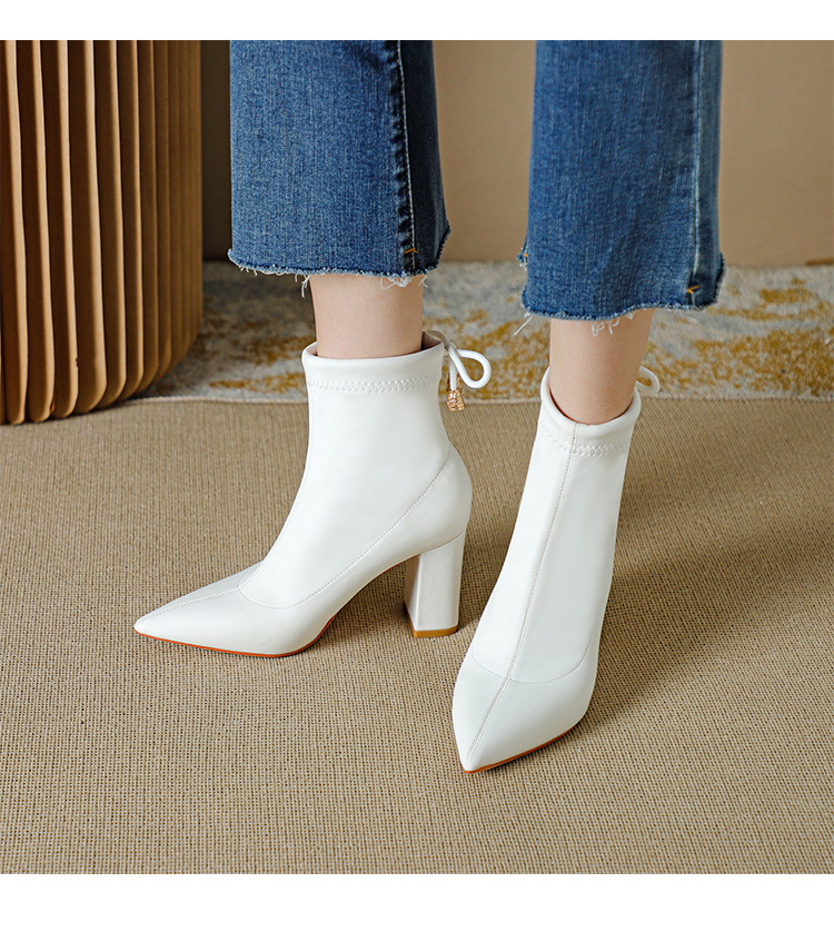 Xyp-cd 가을과 겨울 가죽 스트레치 발목 부츠 뾰족한 발가락 청키 힐 다목적 슬리밍 하이힐 크기스토어 가기