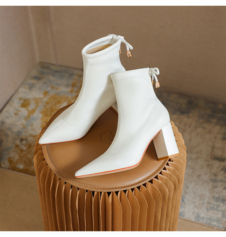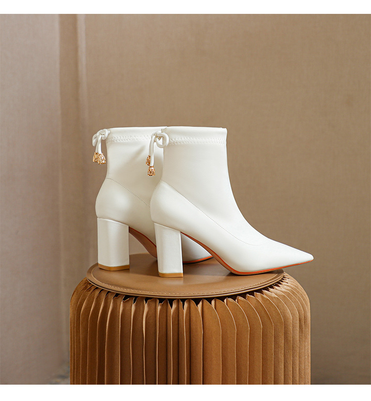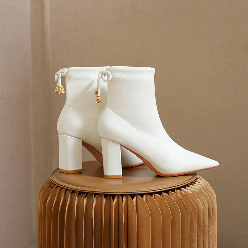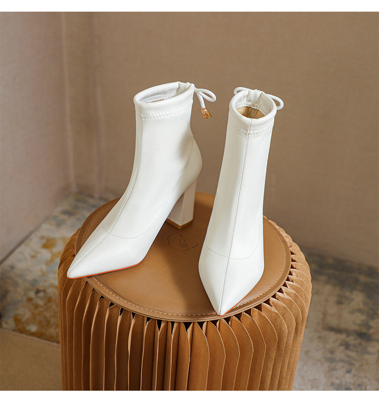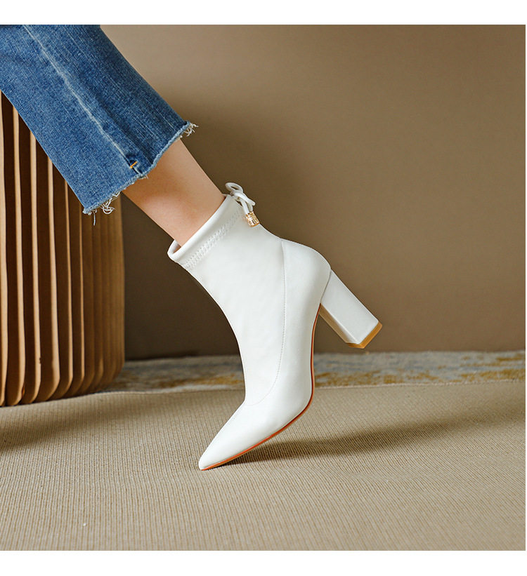 Xyp-cd 가을과 겨울 가죽 스트레치 발목 부츠 뾰족한 발가락 청키 힐 다목적 슬리밍 하이힐 크기