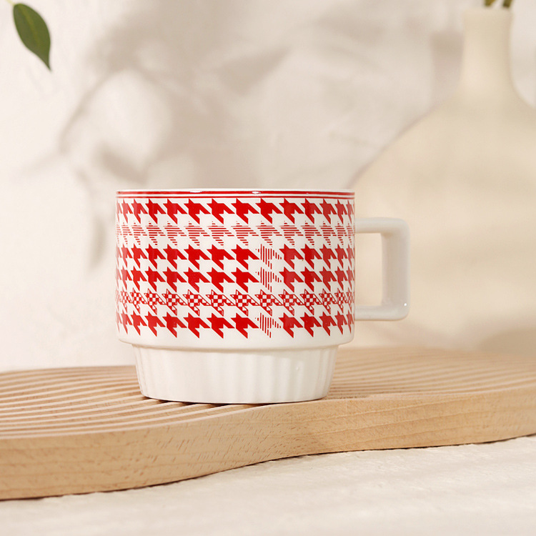 • 물떼새 격자 세라믹 컵-레드