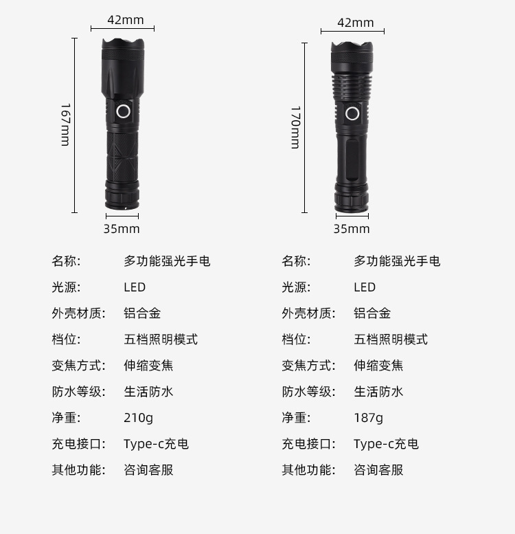 • 고정 초점 시리즈 (26650*2 배터리 포함)