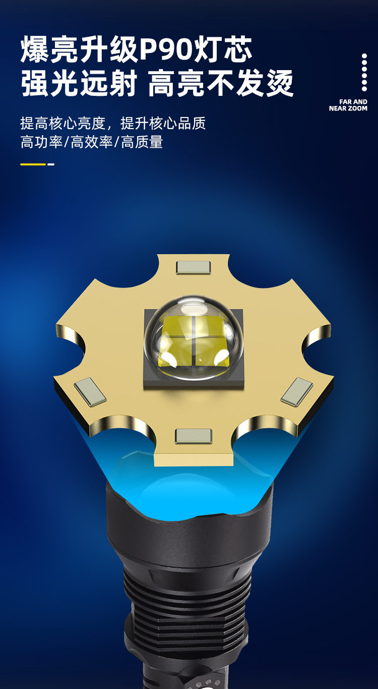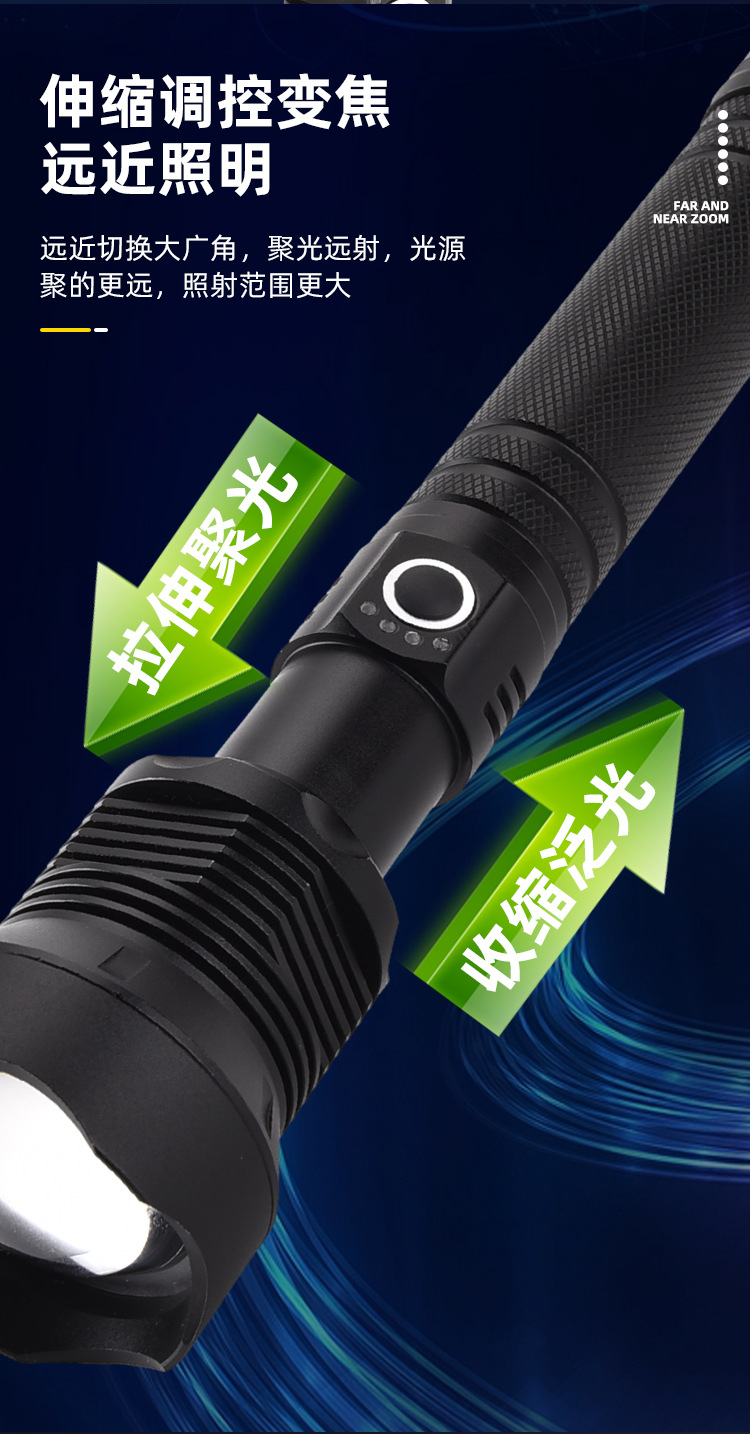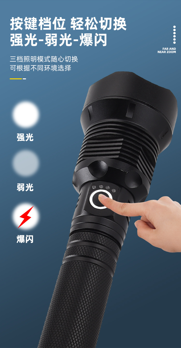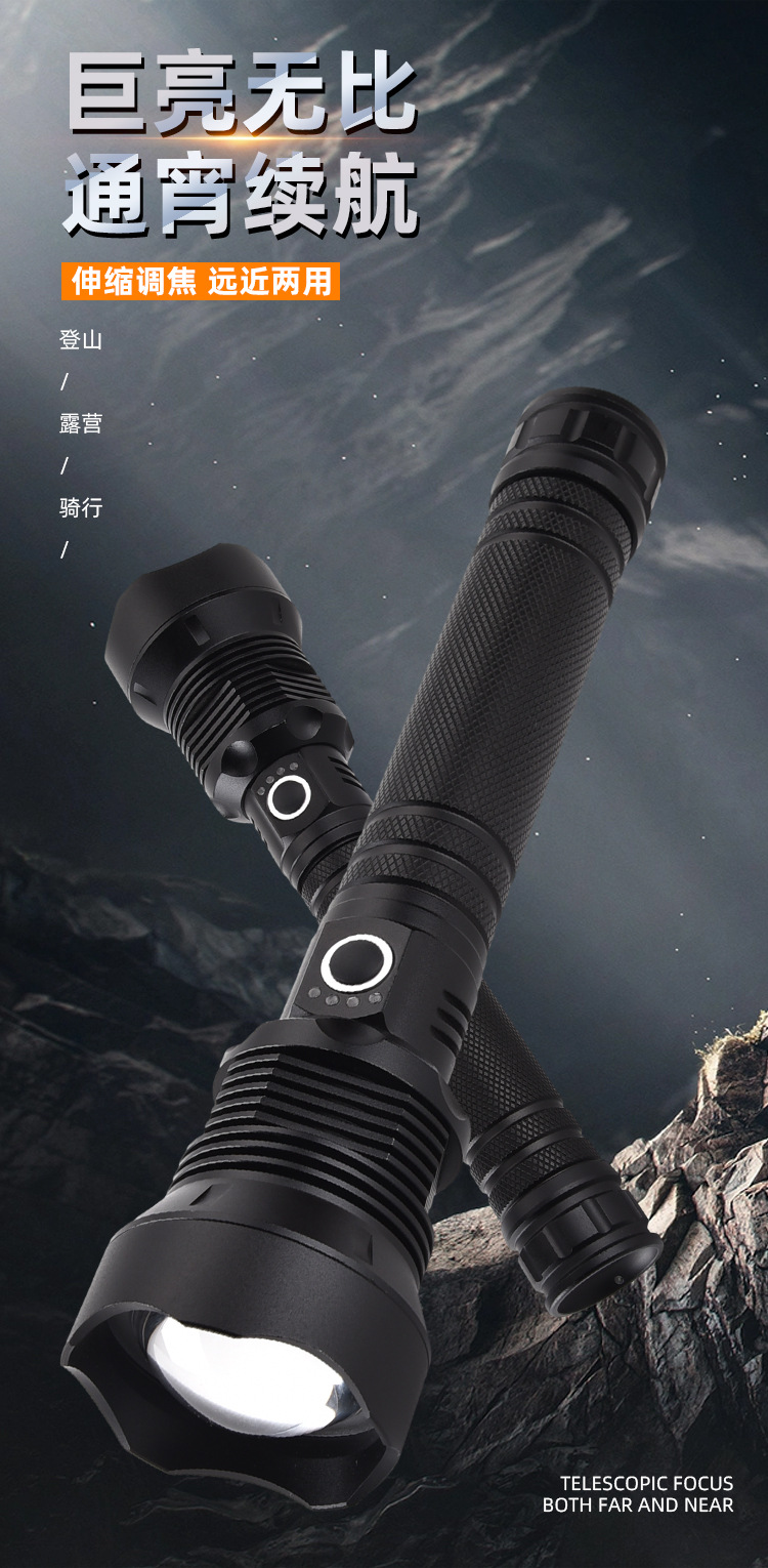새로운 초강력 충전식 손전등, 강한 빛 집중 조명, 10만 루멘 장거리 야외 휴대용 장시간 사용 가능 p70