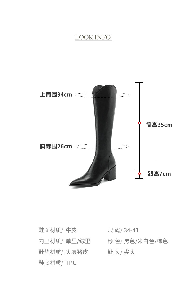 여성용 프랑스 스타일의 복고풍 가죽 뾰족한 발가락 청키 힐 V-mouth 슬리밍 라이딩 부츠 하이힐 무릎 하이 부츠스토어 가기
