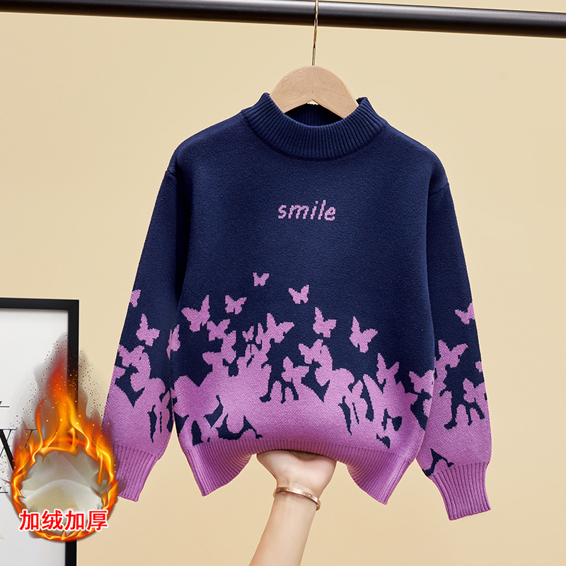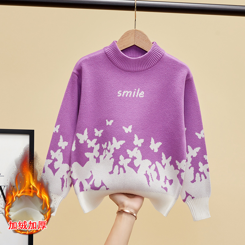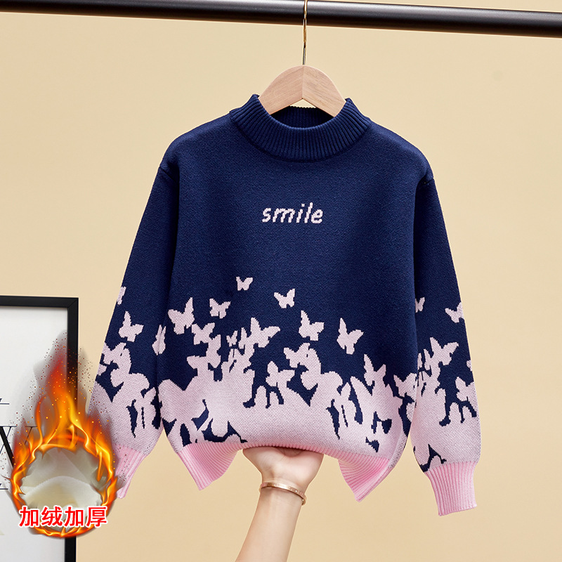 여자 스웨터 면화 어린이 스웨터 만화 중대형 어린이 겨울 기모 두껍게 된 소녀들의 한국식 올 매치 스웨터스토어 가기