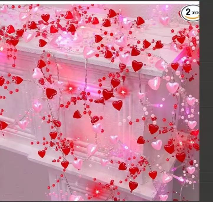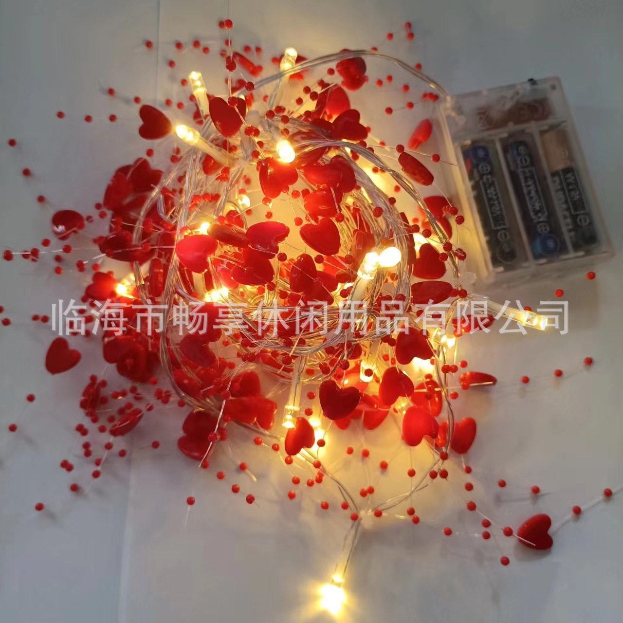 새로운 발렌타인 데이 장식 LED 빨간 사랑 구슬 끈 조명 결혼식 제안 분위기 장식 아마존 뜨거운 판매