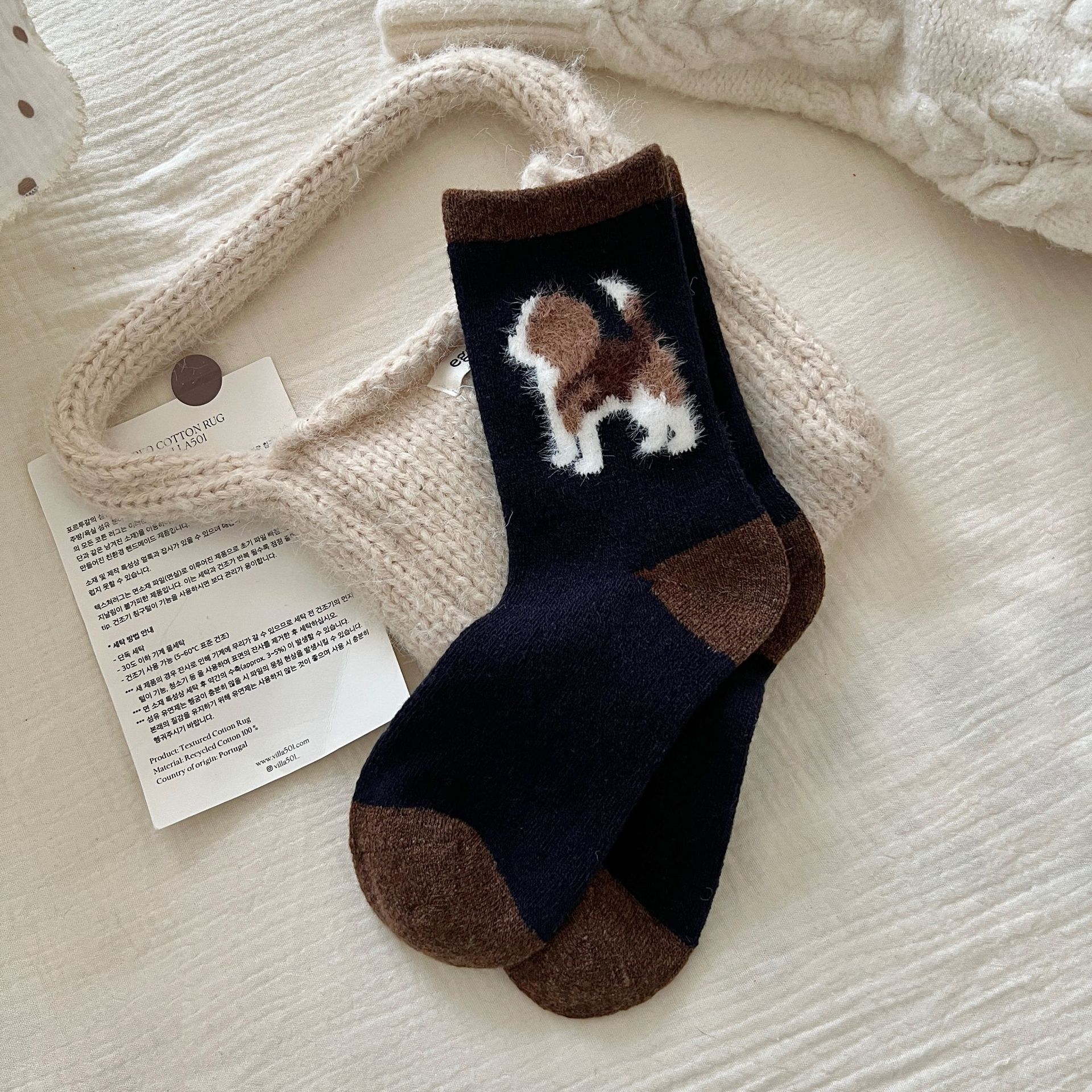 가을과 겨울 양모 입체 강아지 한국 조수 양말 뼈없는 모직 따뜻한 양말 여성 양말 대비 컬러 파일 양말스토어 가기