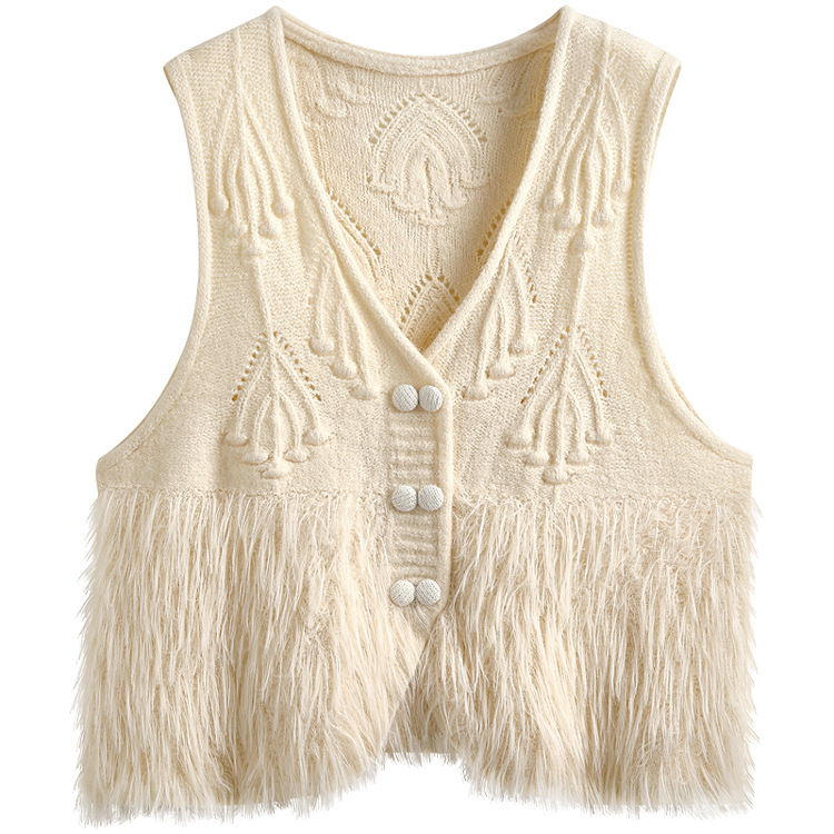 Jiuzhou Chengpin/JZZDEMM 꽃무늬 태슬 디자인 패셔너블한 여성용 니트 조끼스토어 가기