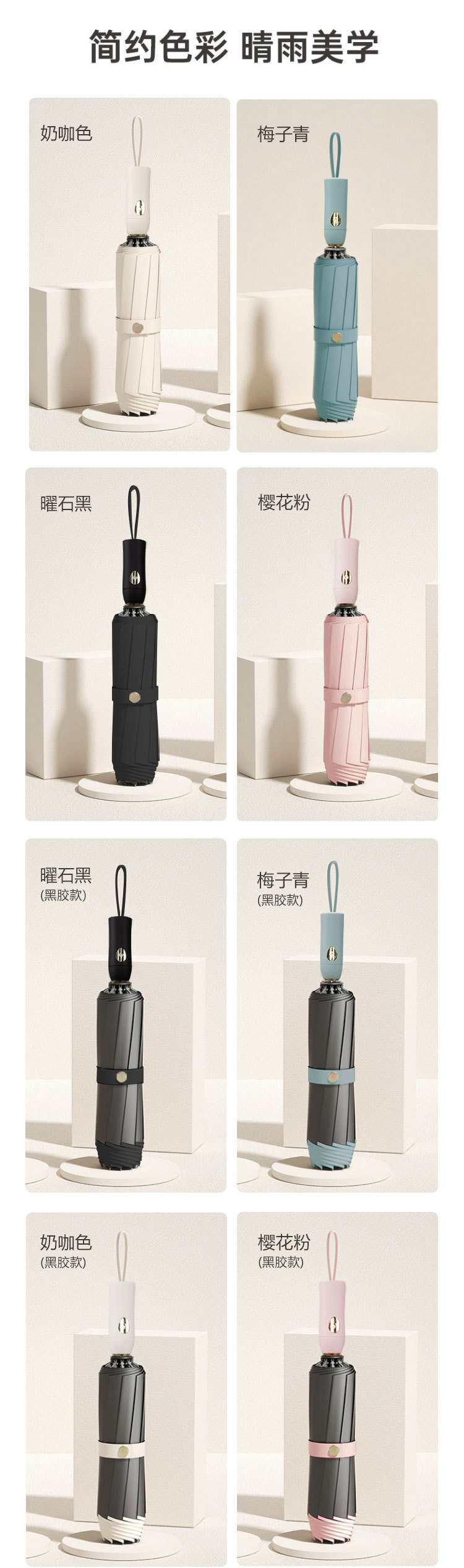 접이식 단색 3단 10본 역방향 맞춤형 광고 인쇄 비닐 자외선 차단 파라솔 도매스토어 가기
