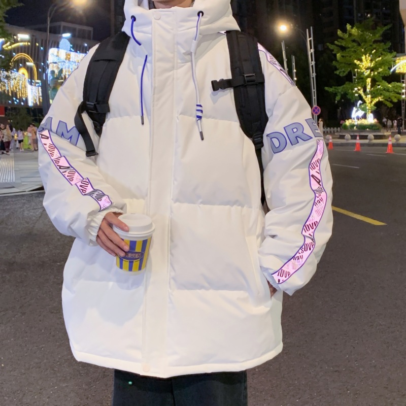 NASA 다운 재킷 남성과 여성의 겨울 2023 새로운 기모 두꺼운 커플 패션 브랜드 화이트 오리 다운 느슨한 코트 패션스토어 가기
