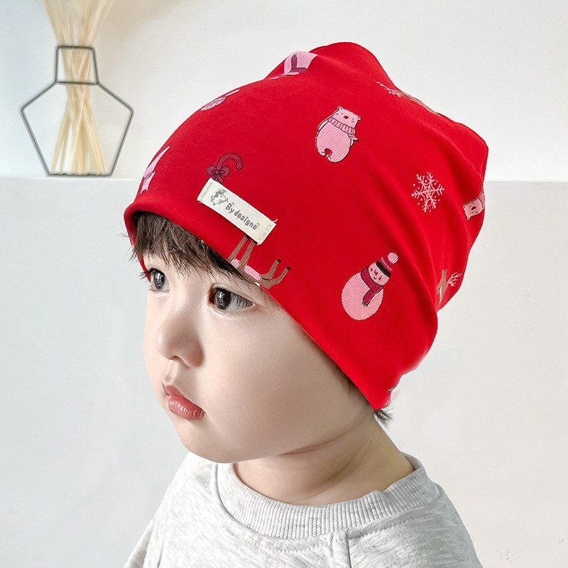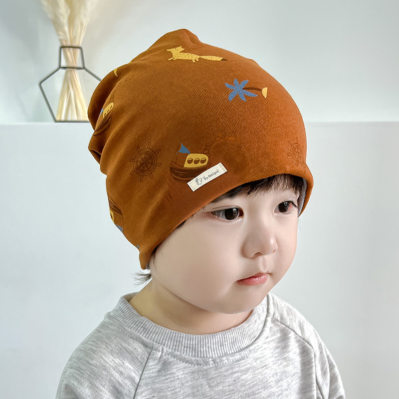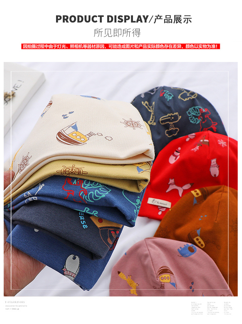 25가지 신상품 이중층 아기 모자 가을 겨울 풀오버 모자 신생아 모자 순면 프린트 어린이 모자 해외 직구스토어 가기