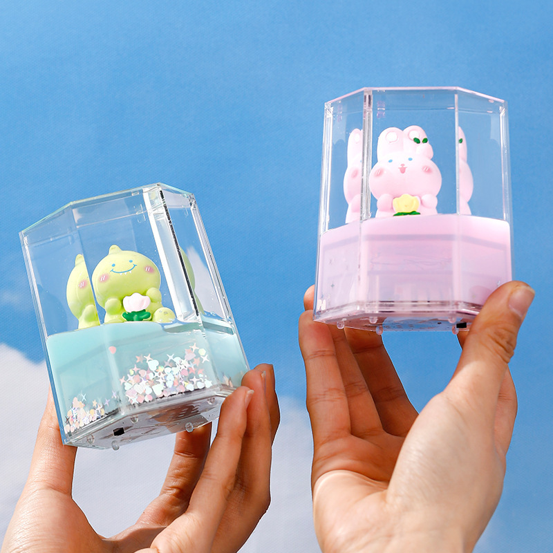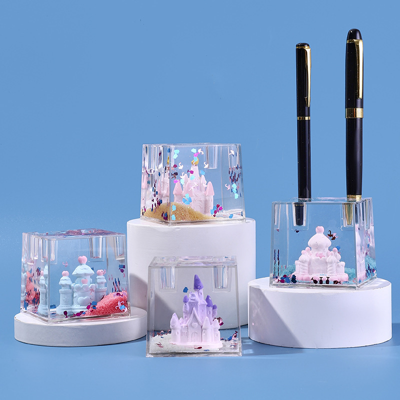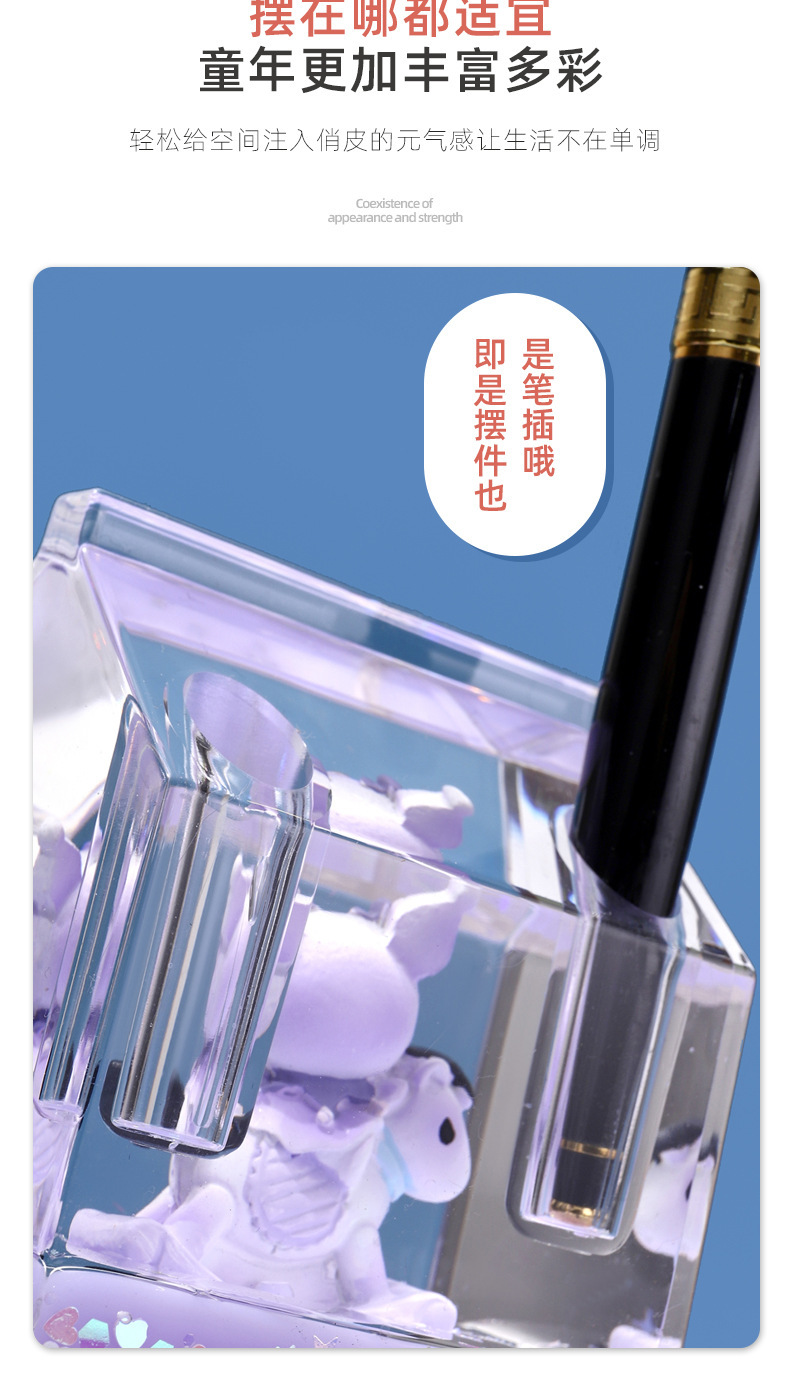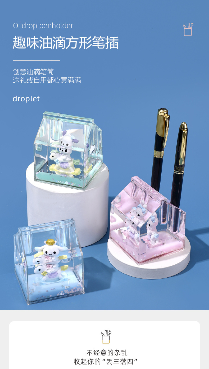 창조적 인 선물 학생 기름 방울 퀵 샌드 문구 펜 홀더 데스크탑 만화 장식 장식 떠 다니는 액체 펜 홀더 도매