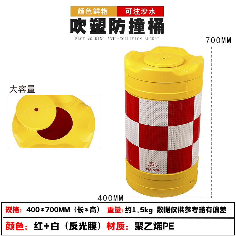 충돌 방지 버킷 원통형 회전 플라스틱 충돌 방지 버킷 도로 교통 플라스틱 격리 부두 물 주입 션트 버킷 경고 반사 버킷