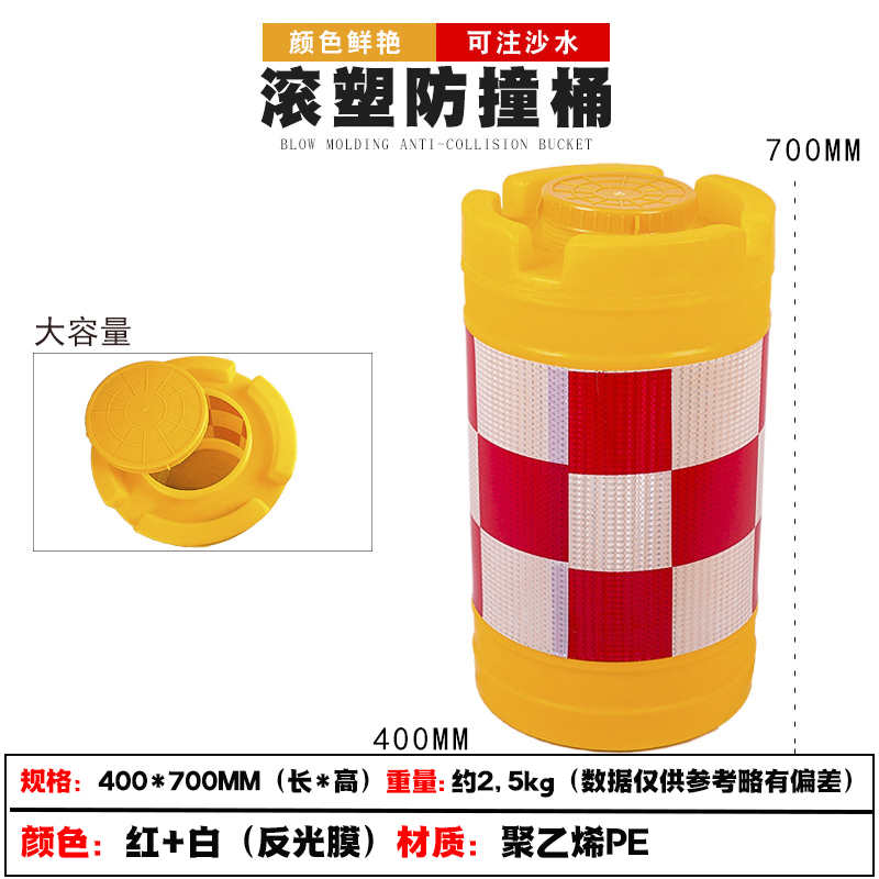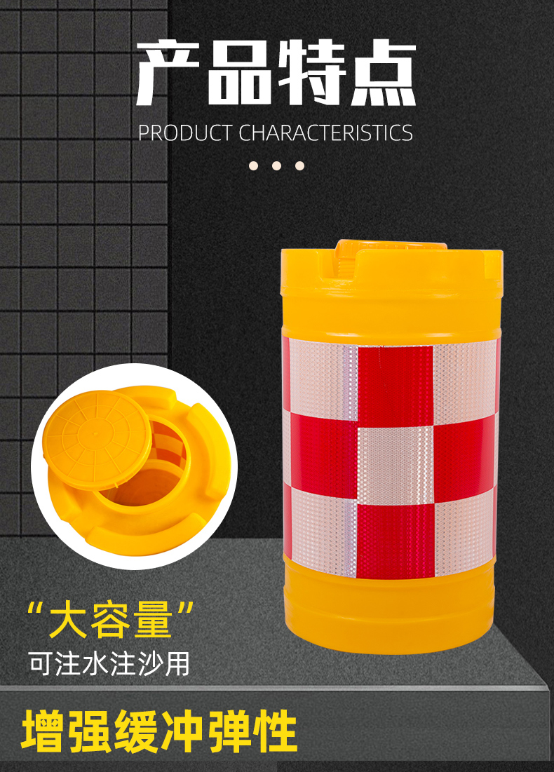 충돌 방지 버킷 원통형 회전 플라스틱 충돌 방지 버킷 도로 교통 플라스틱 격리 부두 물 주입 션트 버킷 경고 반사 버킷스토어 가기